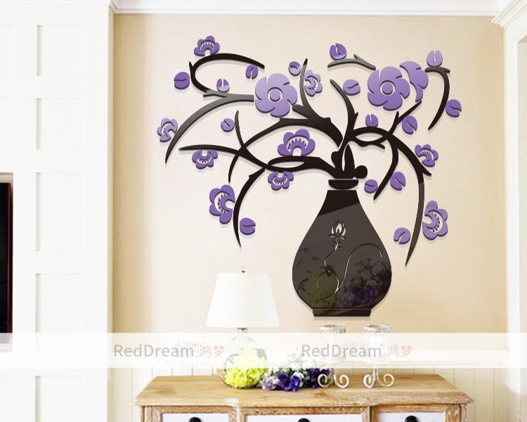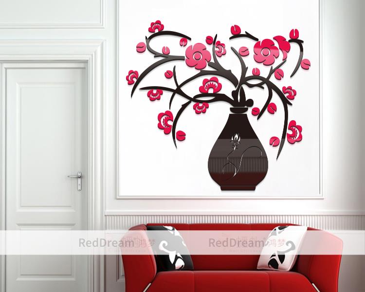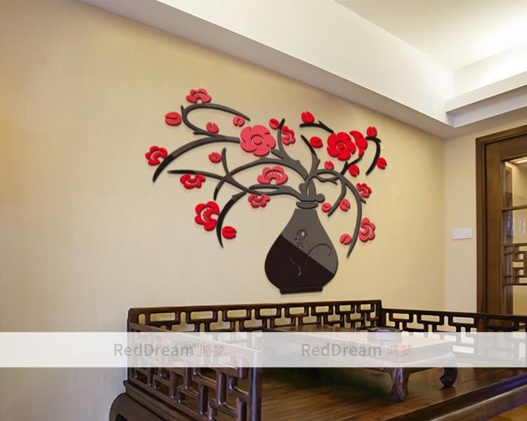 花瓶梅中國風3d立體玄關客廳餐廳水晶過道裝飾背景墻亞克力墻貼畫
