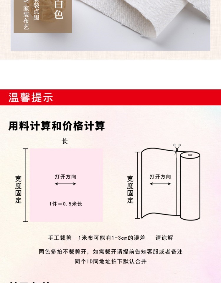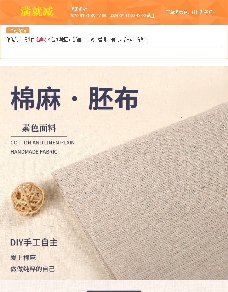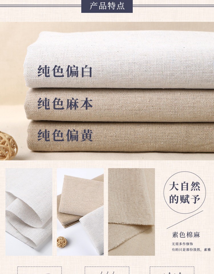 亞麻布料 日韓純色沙發素色棉麻布素麻 背景布面料diy手工桌布