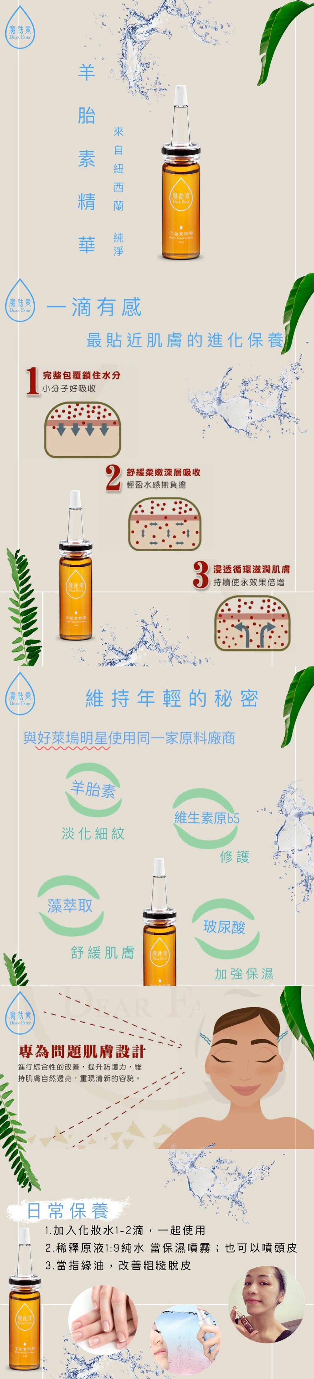 胎盤素、玻尿酸、藻萃取、維生素B5