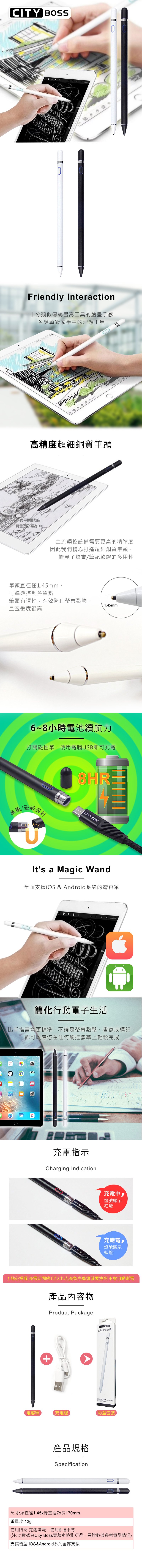 .使用時間:充飽滿電,使用6~8小時(注:此數據為City Boss實驗室檢測所得,具體數據參考實際情況)