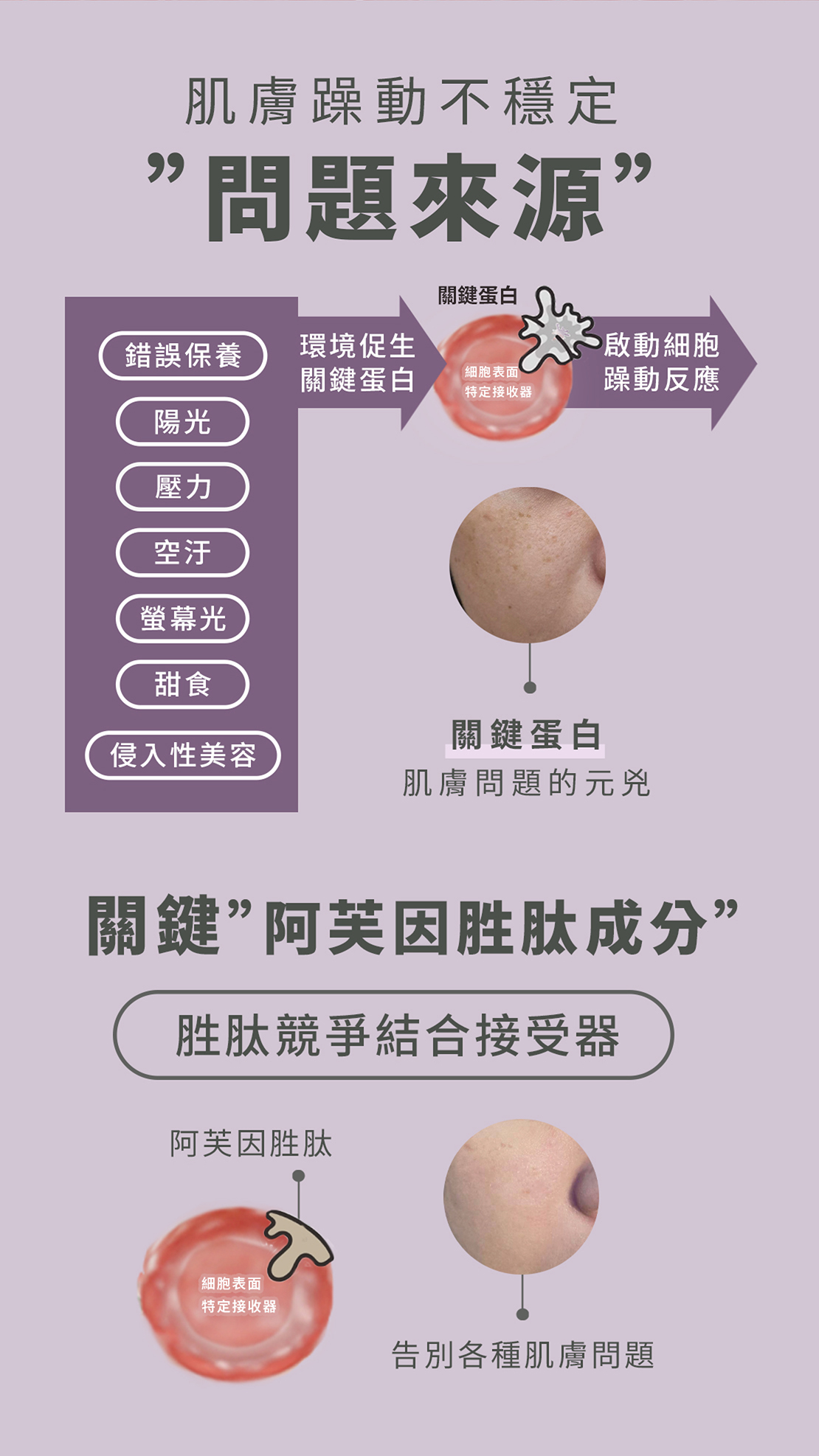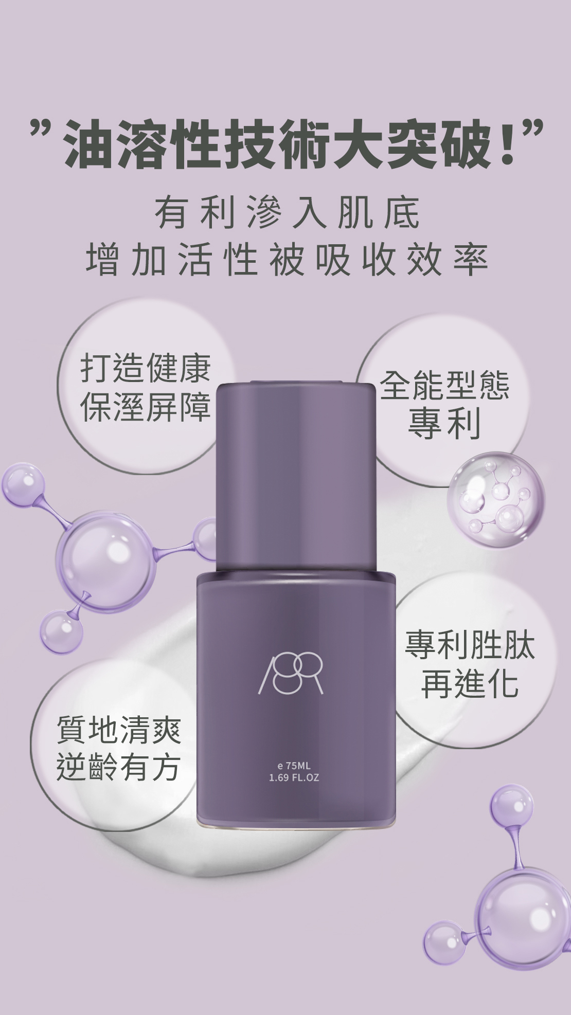 內含阿芙因胜肽Alphroin®,台灣生醫專利緊緻配方針對各種膚質,從輕熟齡到熟齡,這階段的你生活節奏快速,需要簡單、輕盈、有感的鎖水步驟。