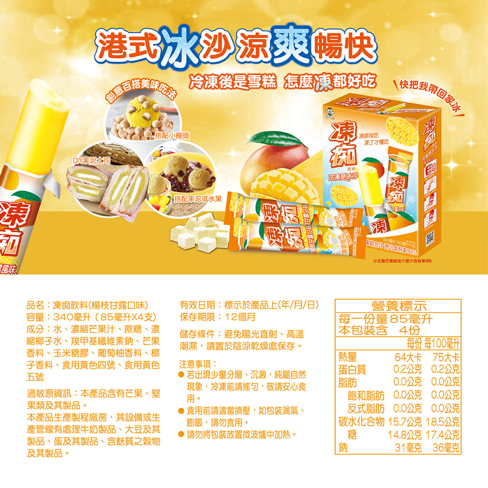 5. 旺旺 凍痴飲料(楊枝甘露口味) 85ml*4支/盒 凍撕推吃 飲料 雪糕
