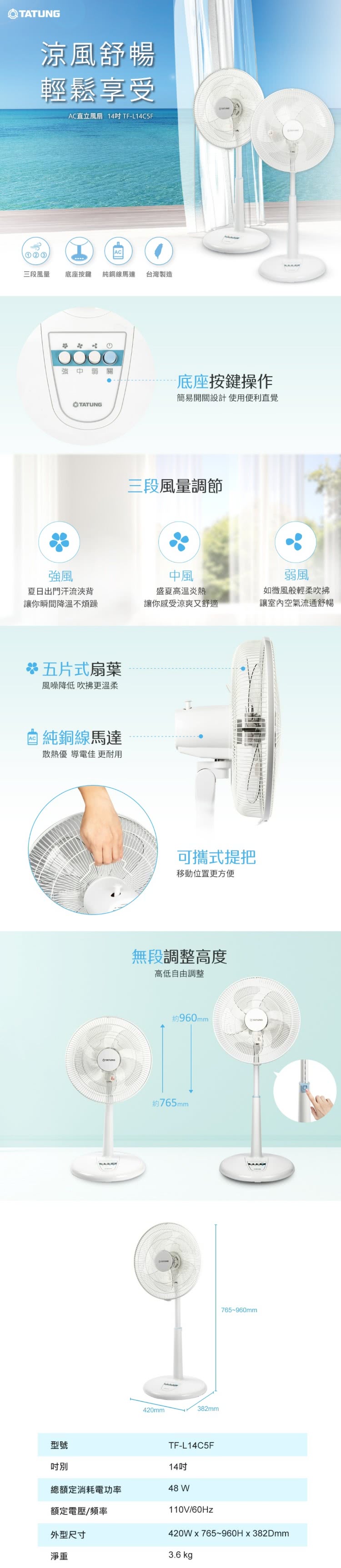 TATUNG 大同 14吋立扇電風扇 TF-L14C5F