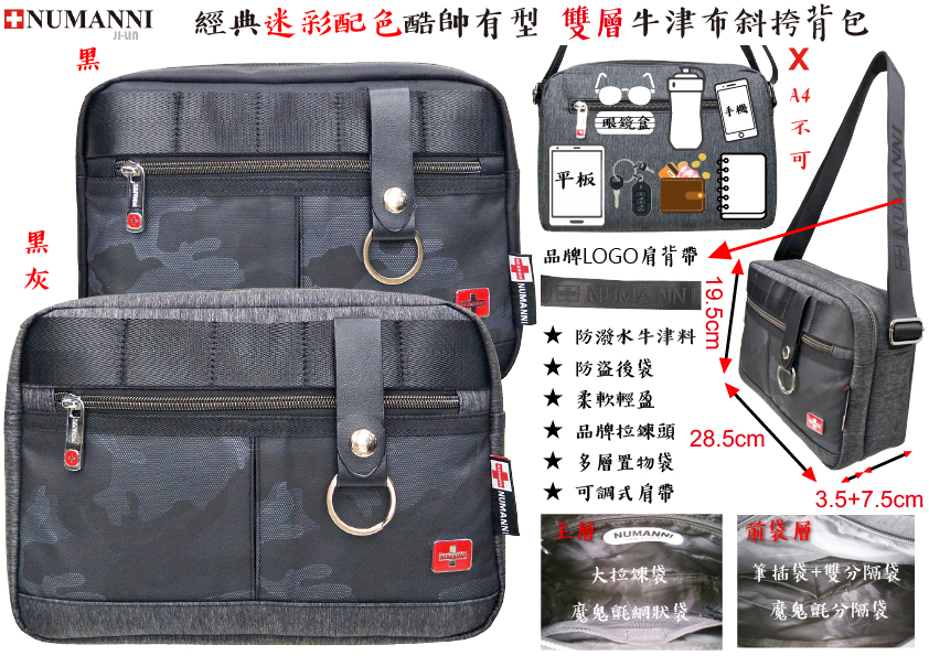 25-1012G【NUMANNI 奴曼尼】經典迷彩配色酷帥有型 雙層牛津布斜挎背包 (二色)