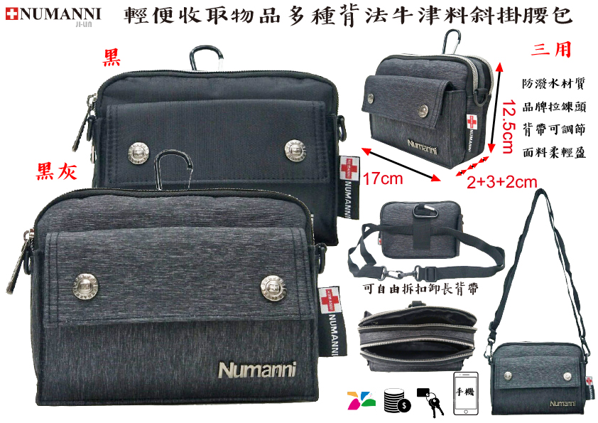 25-8863A【NUMANNI 奴曼尼】輕便收取物品多種背法牛津料橫式三用包 (二色)