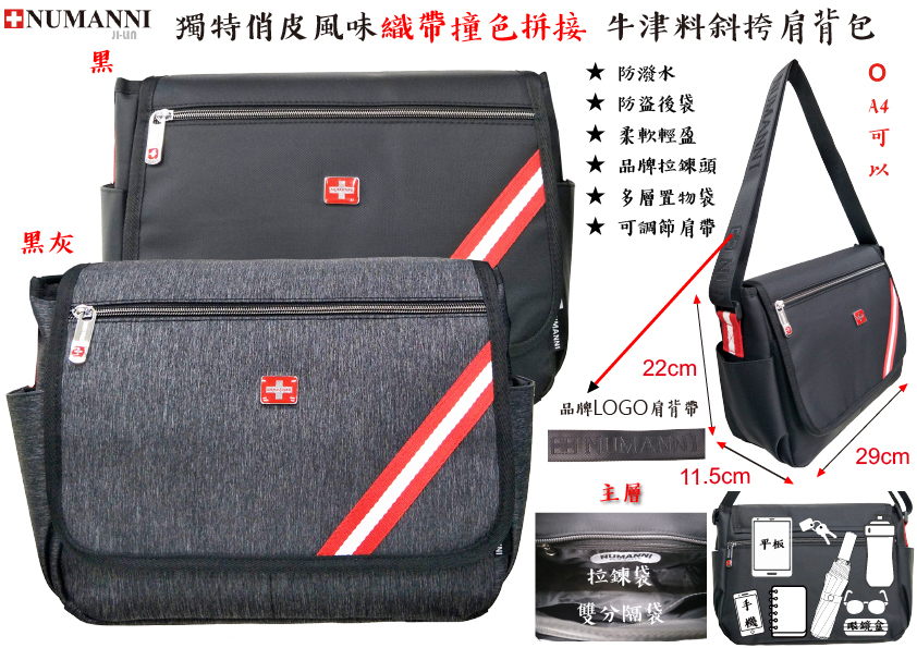 25-8908【NUMANNI 奴曼尼】酷炫織帶拼接與功能完美平衡 牛津料單肩背包 (二色)