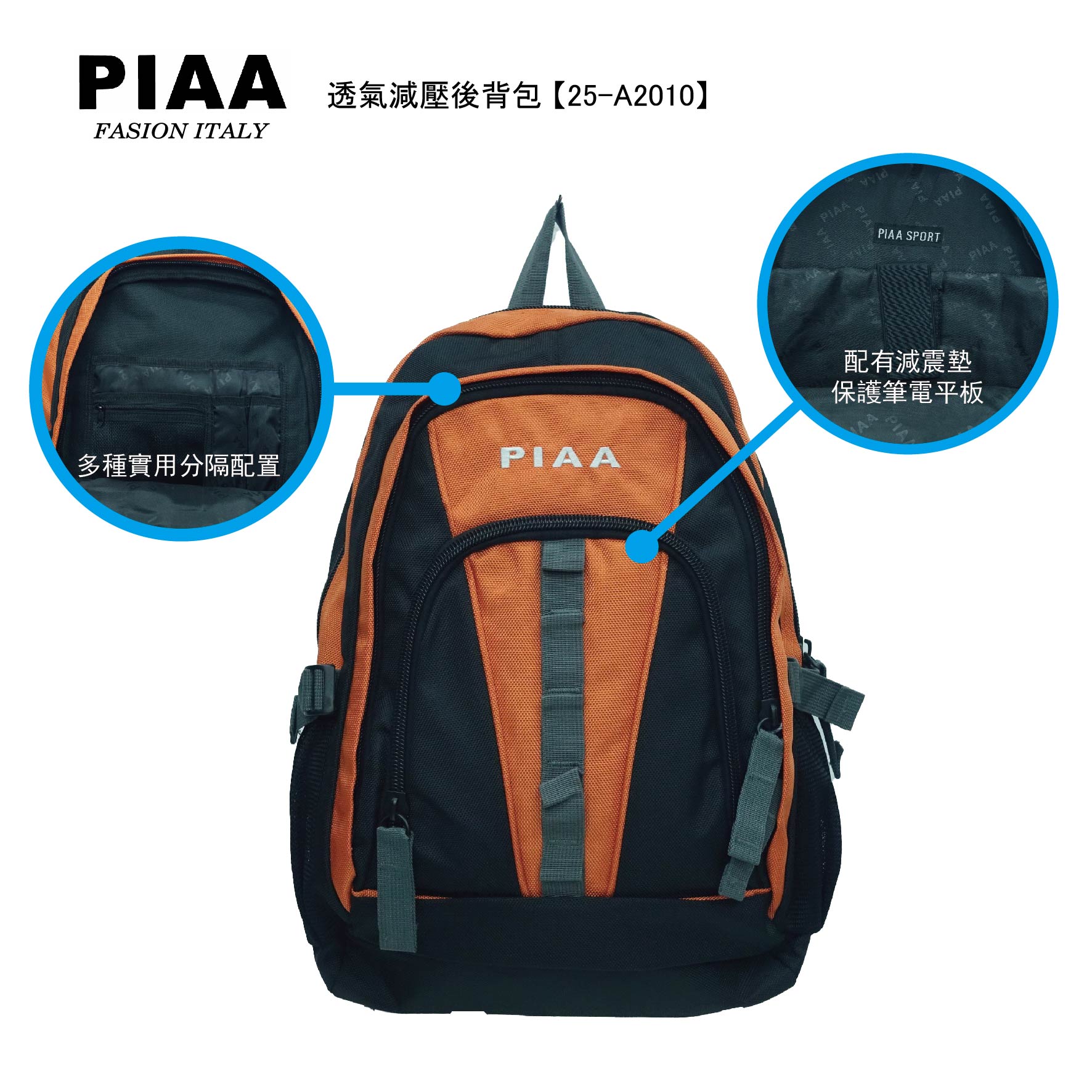 25-A2010 【PIAA 皮亞】透氣減壓實用款運動款電腦背包 (三色)