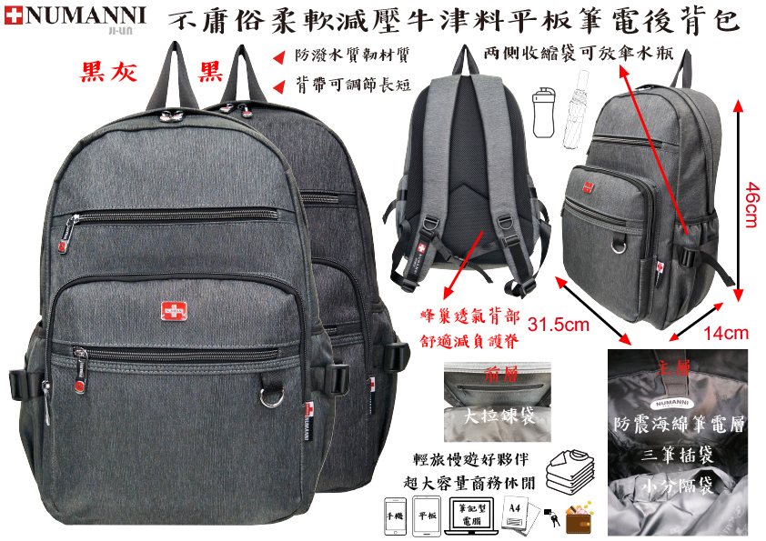 73-1812A【NUMANNI 奴曼尼】有質感適合日常旅行牛津料雙肩背包 (二色)