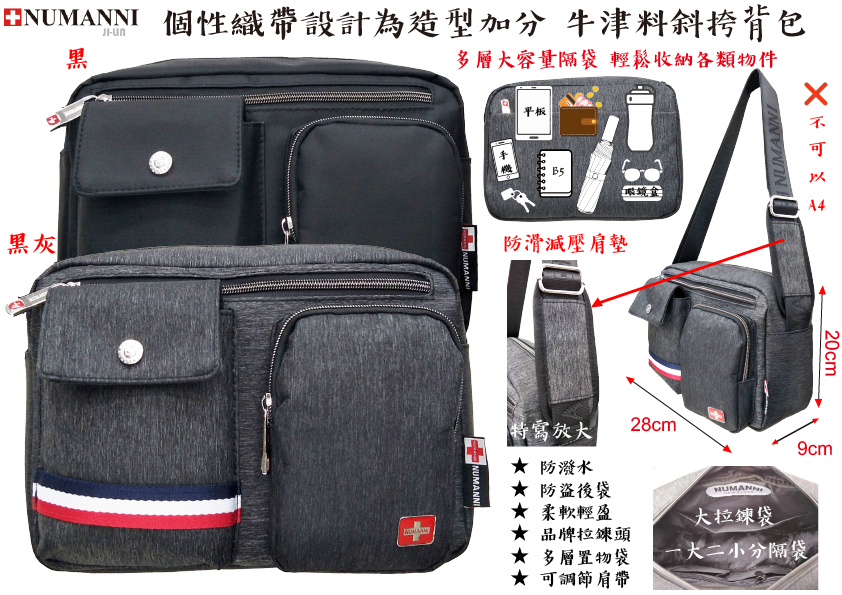 78-8028B【NUMANNI 奴曼尼】個性織帶設計為造型加分 牛津料斜挎背包 (二色)