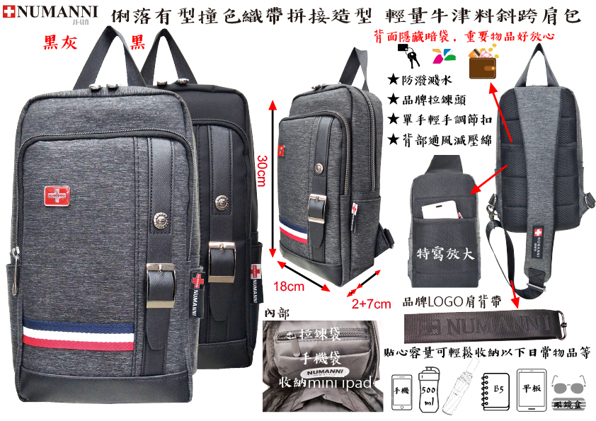 78-H503【NUMANNI 奴曼尼】俐落有型撞色織帶拼接造型 輕量牛津 (二色)