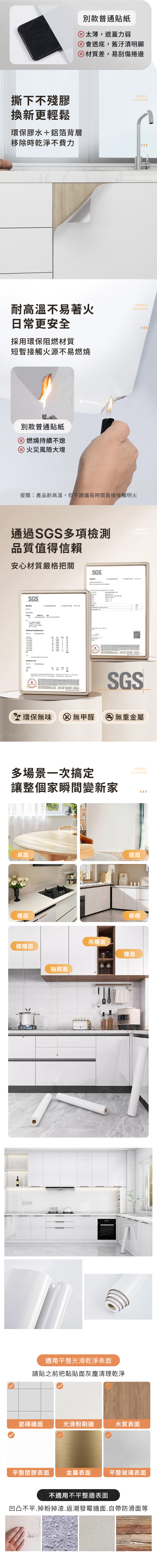 3. 日常使用與清潔注意:本貼紙防水防油、耐磨抗汙,日常髒污可用濕布擦拭,但應避免使用尖銳物品刮擦或粗糙清潔工具。雖具耐高溫與阻燃特性,仍不建議長時間接觸明火或高溫熱源(如直接放置滾燙鍋具),以維持產品壽命與安全。