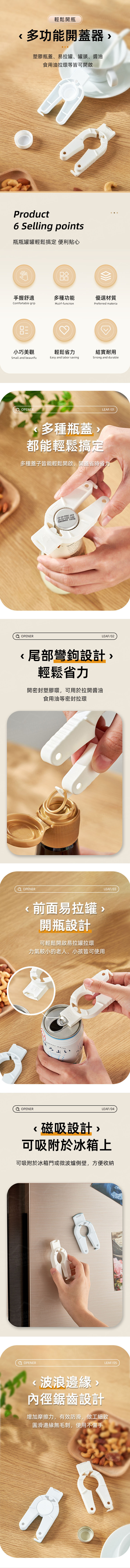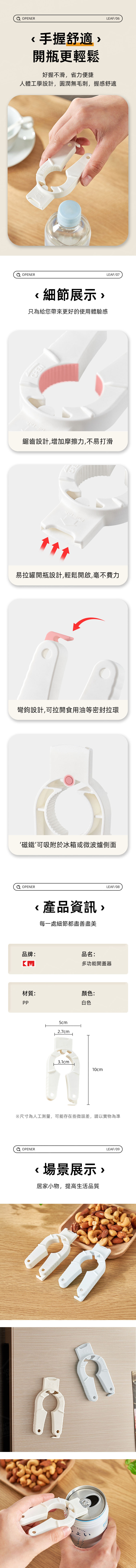 ●多功能設計|適用於多種瓶蓋,包括塑膠瓶、易拉罐、罐頭、醬油瓶拉環等。