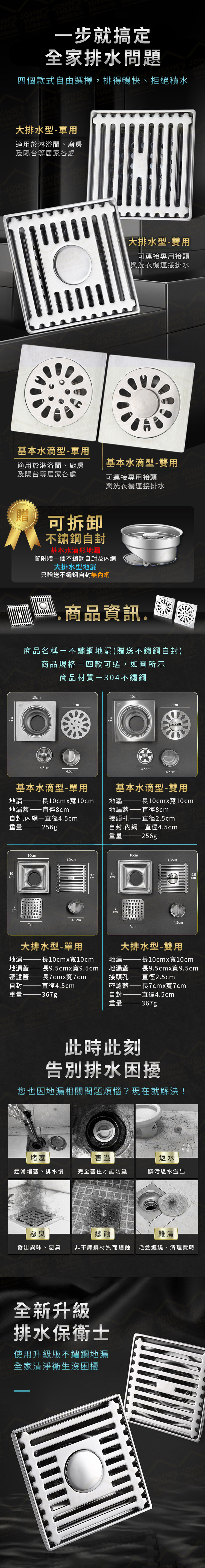304不鏽鋼大排水地漏 多規格 贈自封 排水孔蓋 消水孔 落水頭 集水槽 水門 排水濾網【YX0406】《約翰家庭百貨