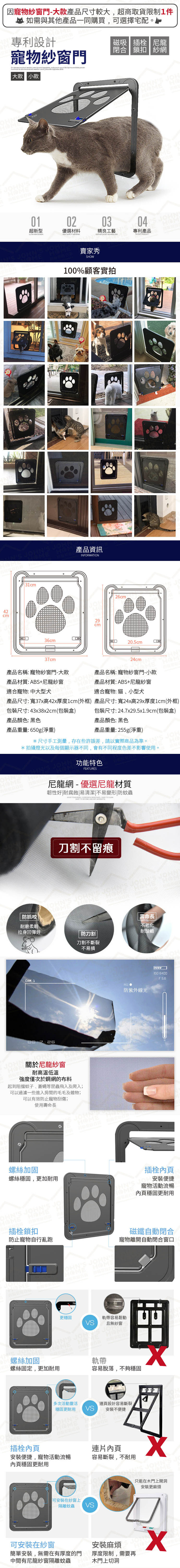 這款寵物紗窗門,特別設計了優質尼龍紗網,