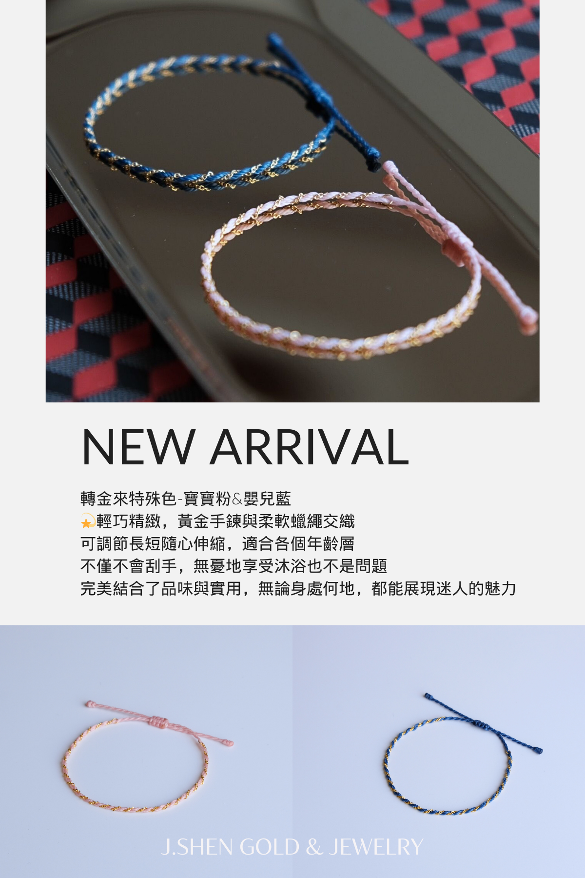 轉金來蠟繩金手鍊-寶寶粉&嬰兒藍