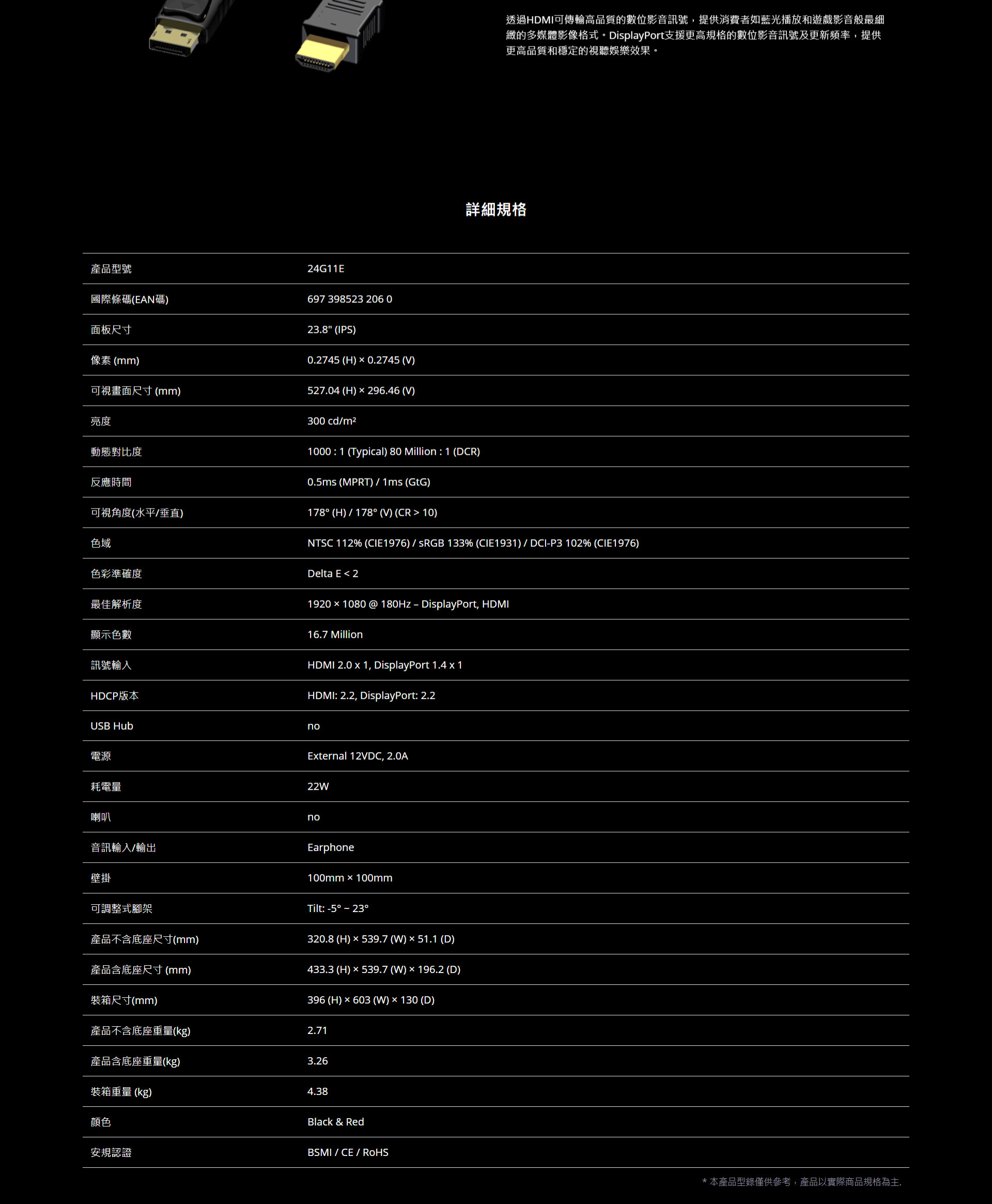 AOC 24G11E HDR平面電競螢幕(24型/FHD/180Hz/0.5ms/IPS) 0