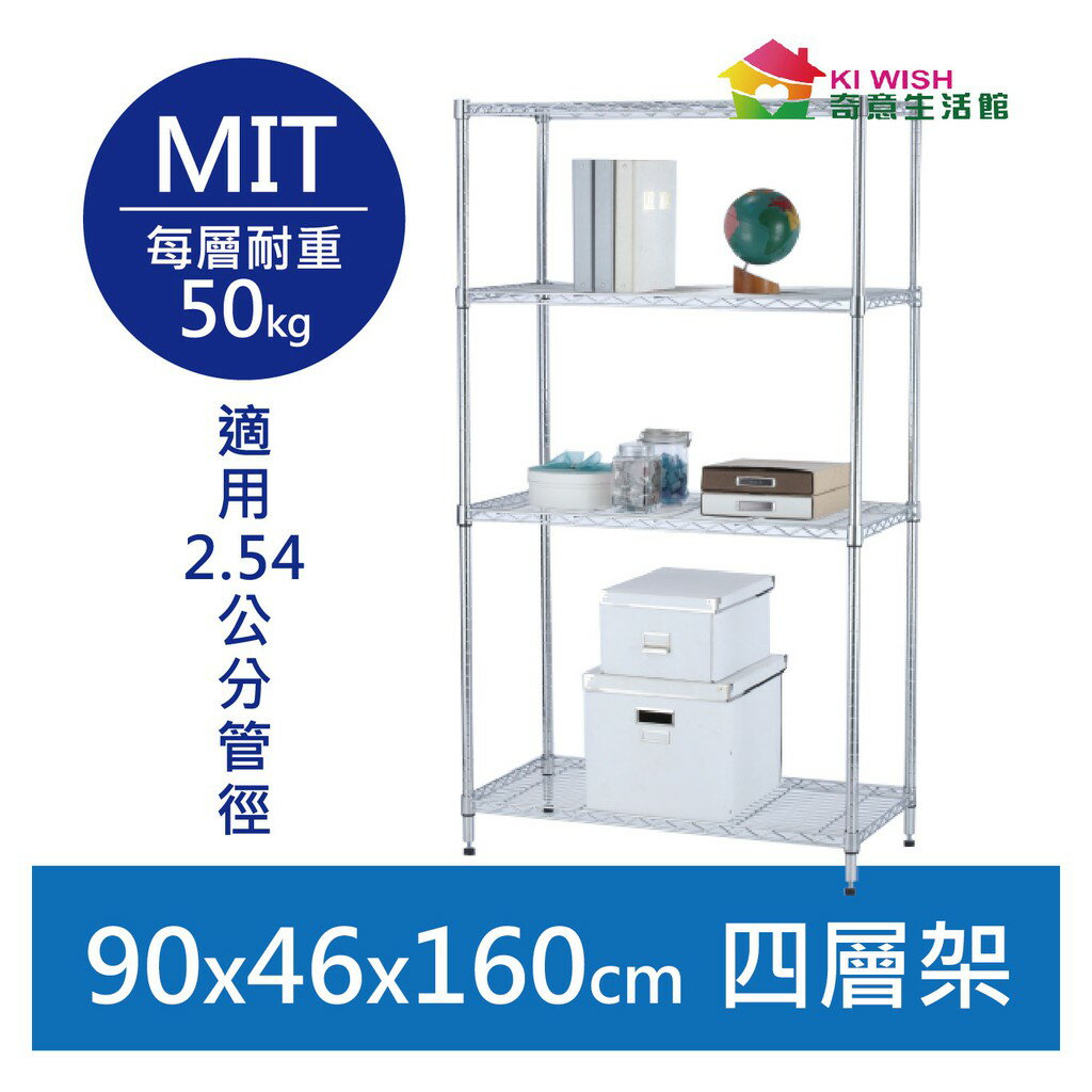 【簡易安裝】鐵架 輕型鎖管 四層架 90x46x160H 置物架 收納架 鐵力士架 書架 波浪架 鍍鉻層架 鞋架 架子 4