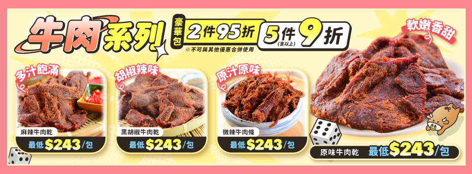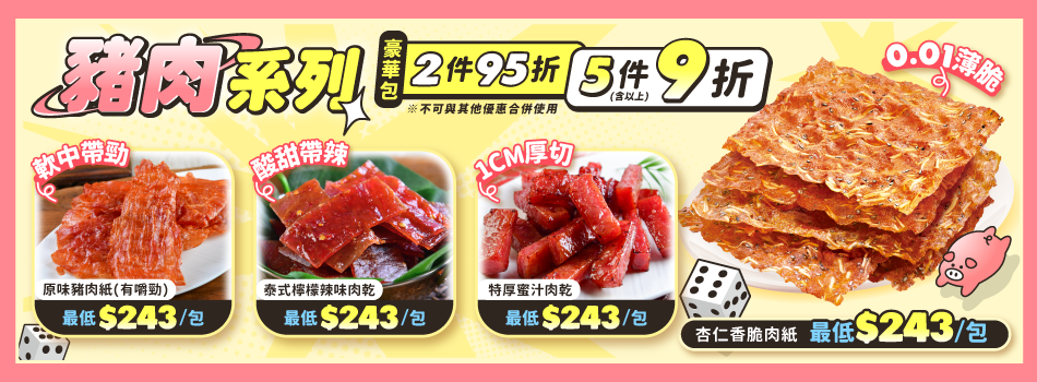 ◎肉乾手工製作每日限量,務必提早預購◎ ⚠【出貨重要公告】⚠ 9/15-10/13 中秋旺季物流繁忙,包裹配送量龐大 ❌無法保證當日送達❌無法指定配送時段❌無法指定配送日期 📦指定出貨日請下單選擇日期,出貨後約3-5天送達(實際配送天數需以物流公告為主)。 ⭕不主動提供紙袋(※若有需求請填寫在備註) ⭐優惠折扣不得與其他優惠合併使用⭐