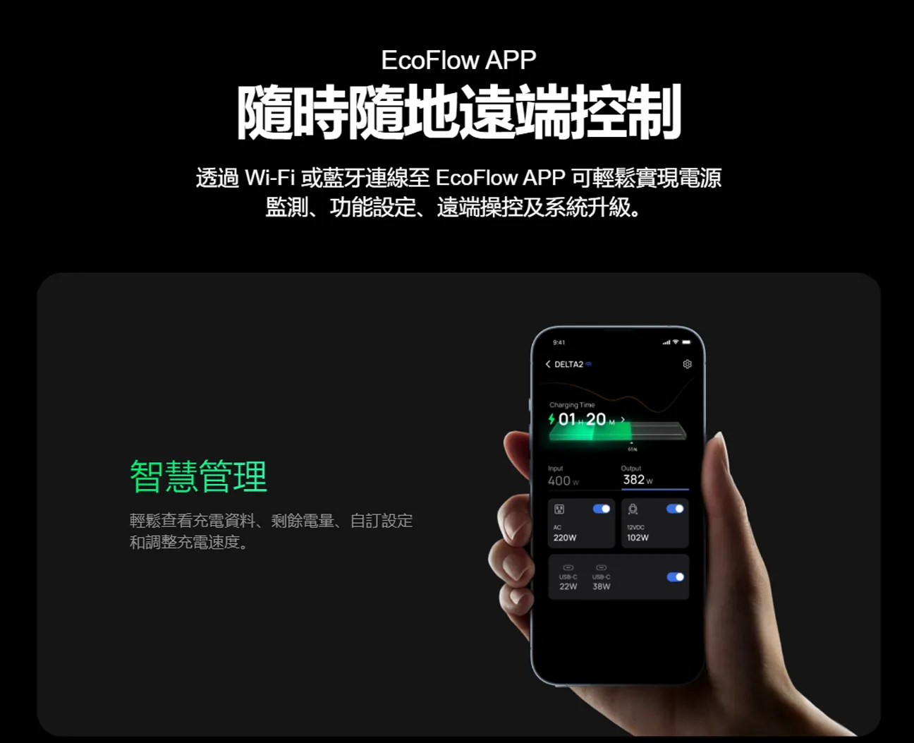 • 可透過遠端操控DELTA 2  EcoFlow App