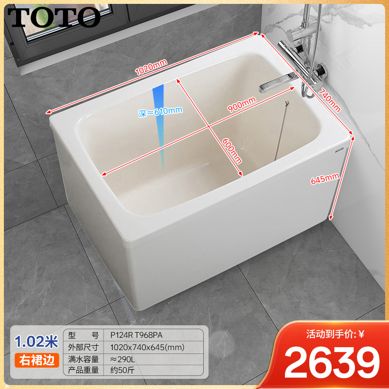 5. {可打統編 保固一年}TOTO獨立浴缸0.8/1/1.2米日本進口雙裙邊迷你小戶型保溫深泡浴盆