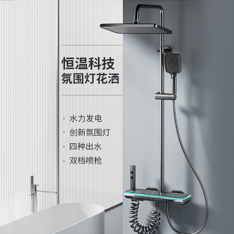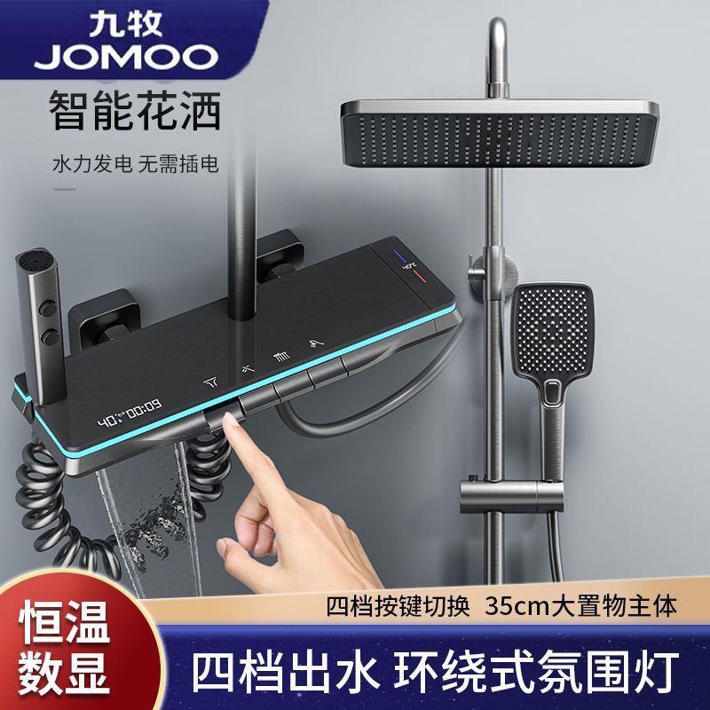 5. {可打統編 保固一年}九牧花灑衛浴淋浴套裝全銅槍灰色鋼琴鍵家用沐浴器浴室噴頭衛生間