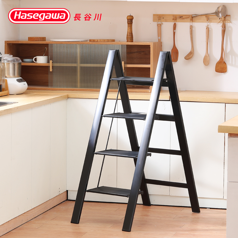 {可打統編 保固一年}日本長谷川Hasegawa梯子家用超薄折疊室內三四步加寬踏板黑色TTE 4
