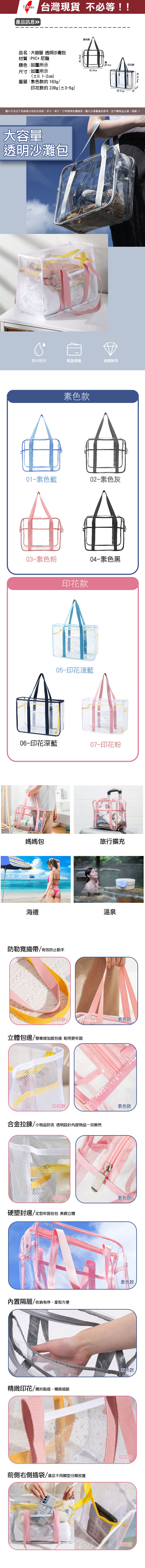 手提袋 防水包 防水袋 透明包 果凍包 側背包 透明手提包 游泳包 海灘包 化妝包 洗漱包 手提袋 沙灘包 大容量 透明沙灘包 ♚MY COLOR♚【S008-1】