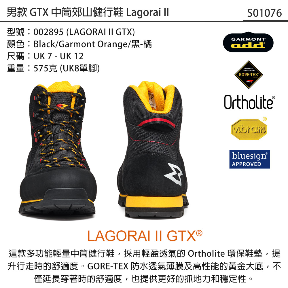 GARMONT 男款 GTX 中筒郊山健行鞋 Lagorai II 002895 (S01076)|黃金大底 GoreTex 防水透氣 健行鞋 環保鞋墊