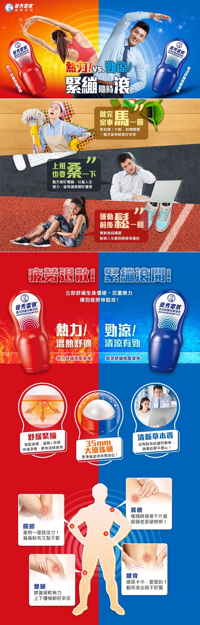 曼秀雷敦 熱力舒緩按摩滾珠 50ml