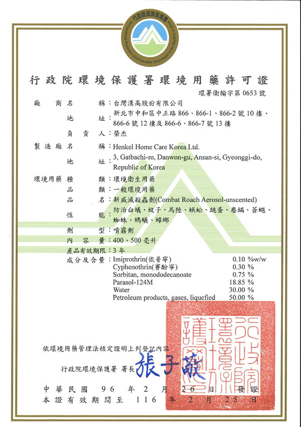 🔎環境用藥許可字號 環署衛輸字第0653號