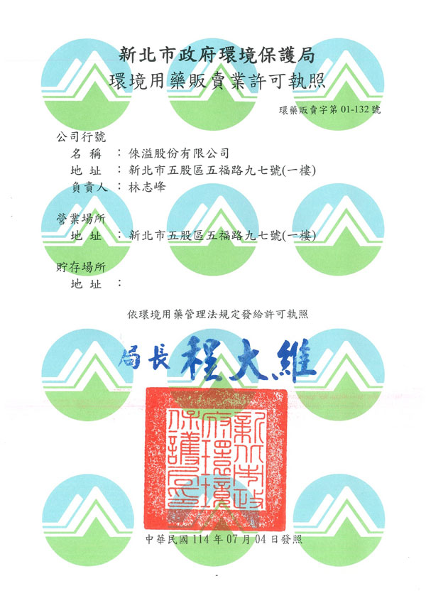 🔎倈溢股份有限公司 環藥販賣字第01-132號