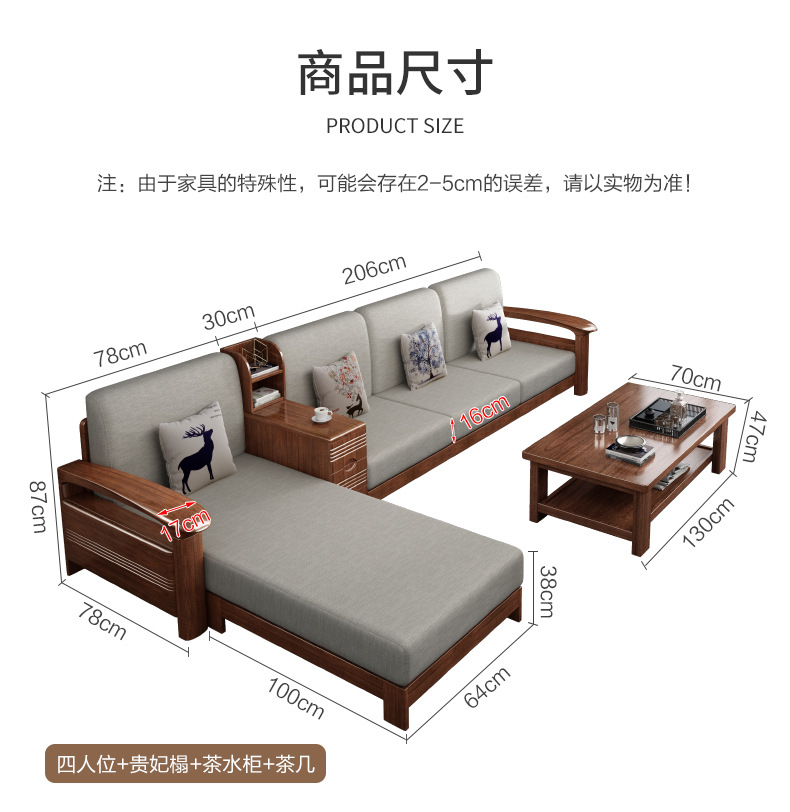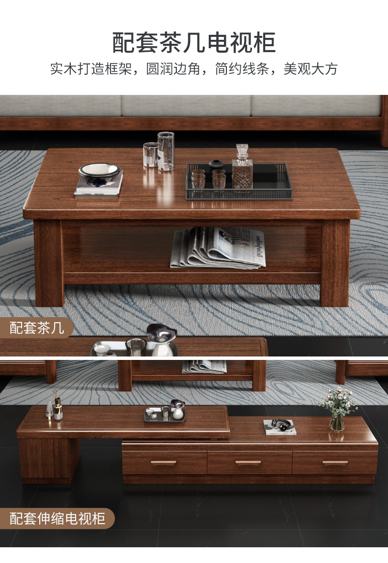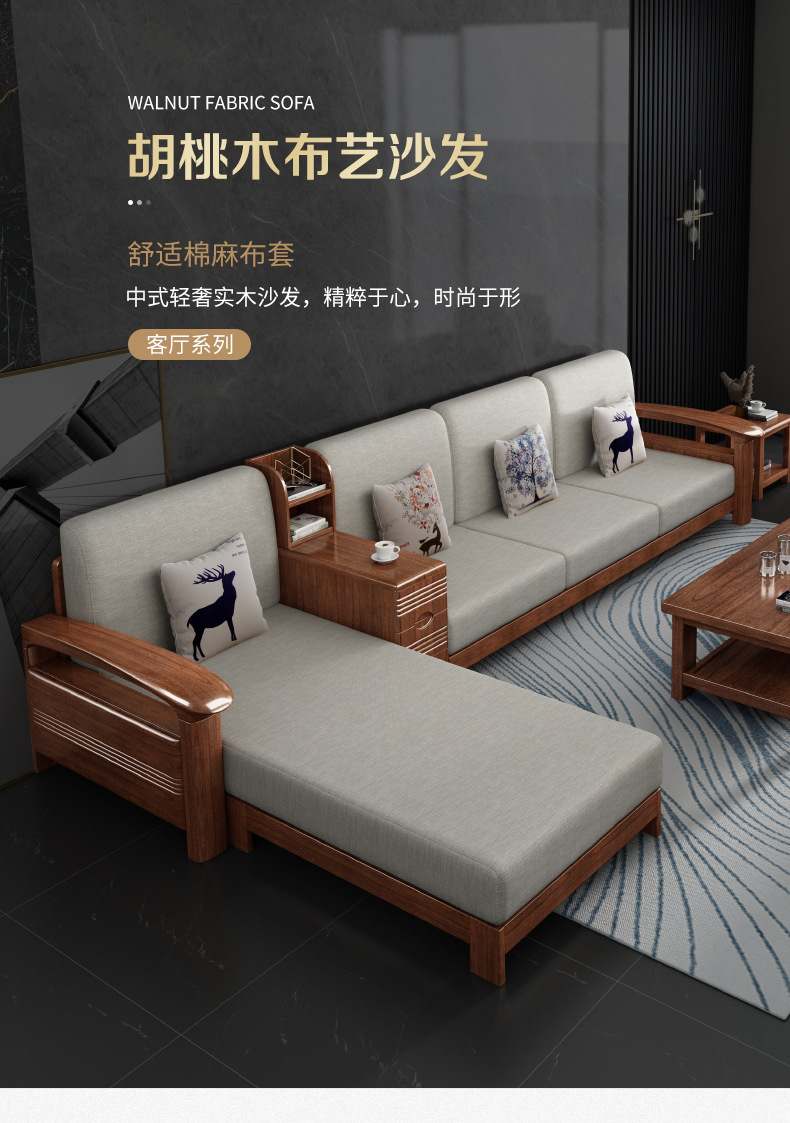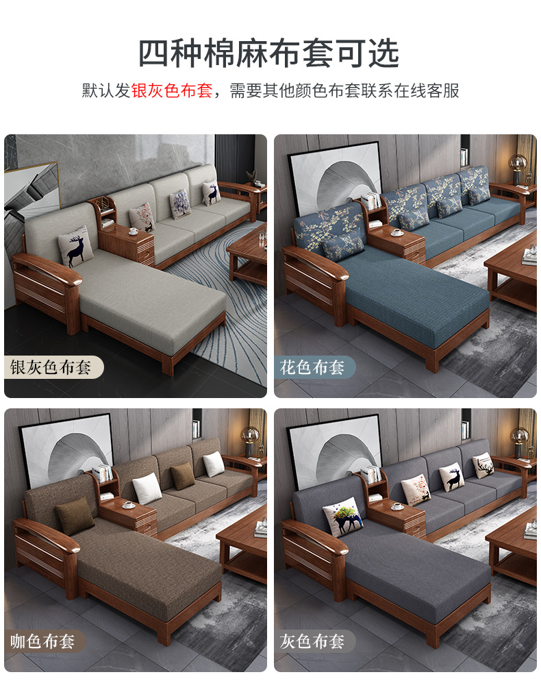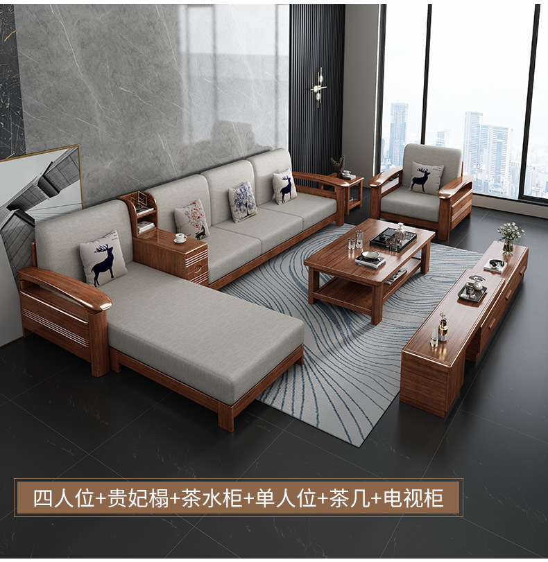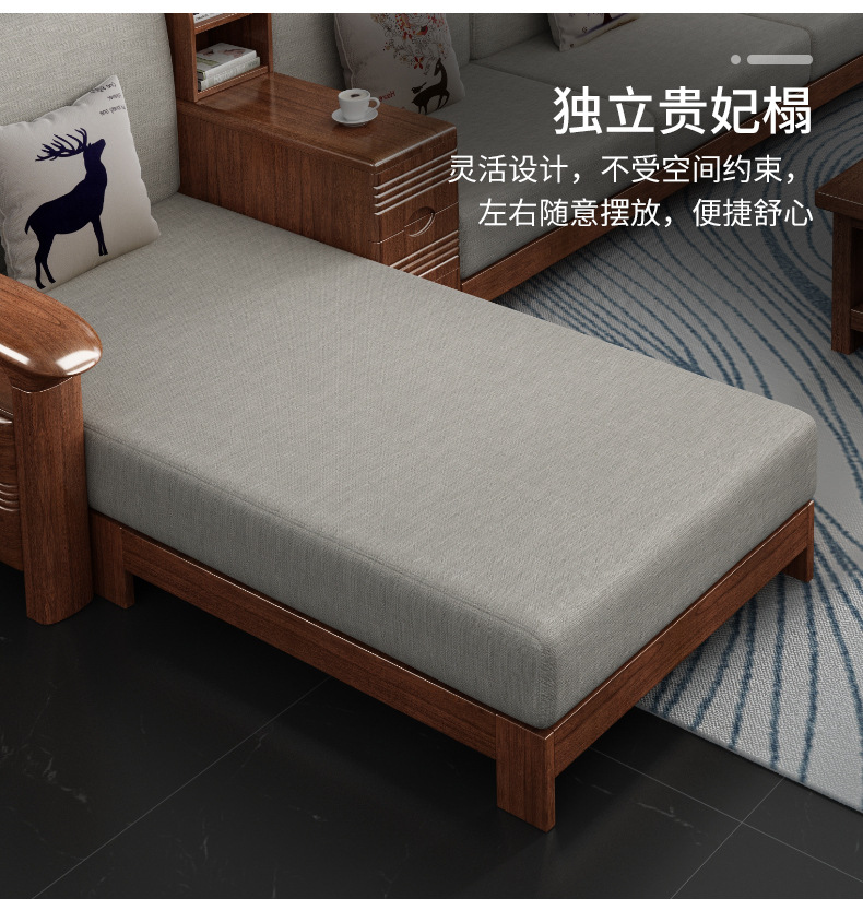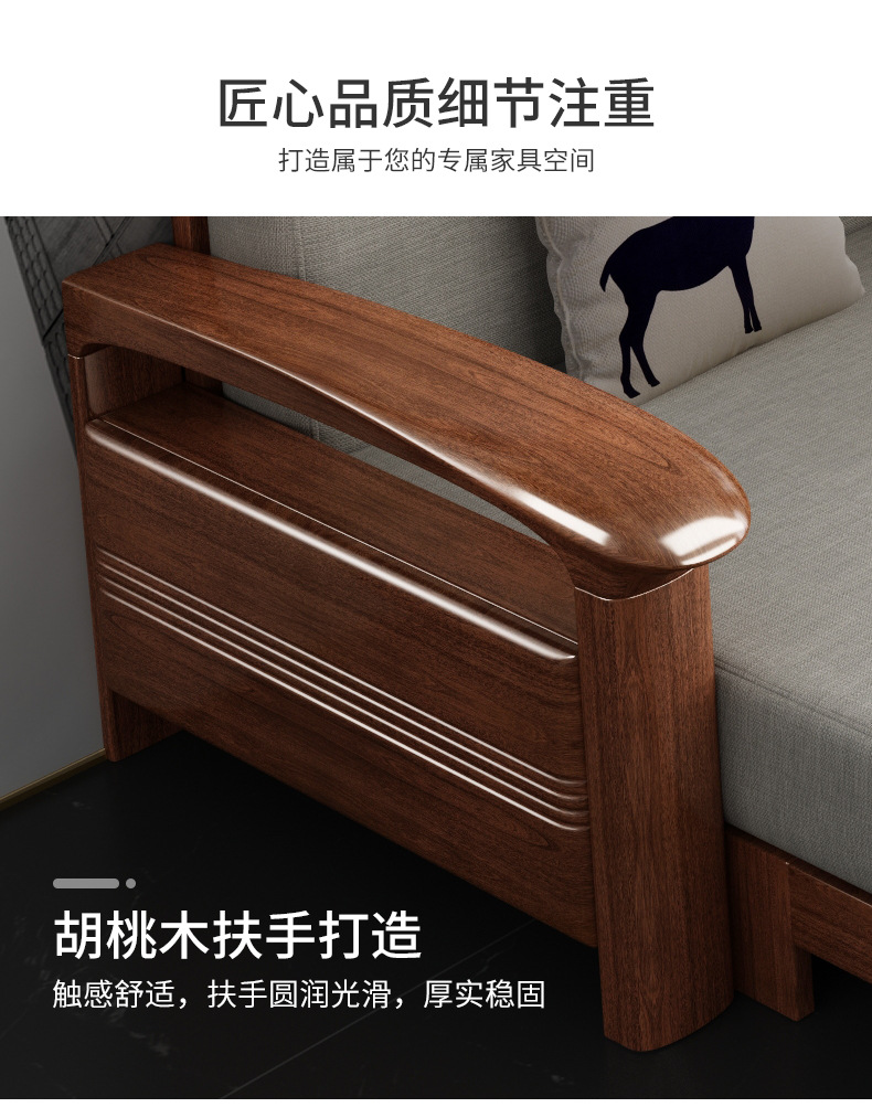 沙發 沙發椅 胡桃木實木沙發客廳儲物轉角貴妃沙發床新中式簡約小戶型沙發