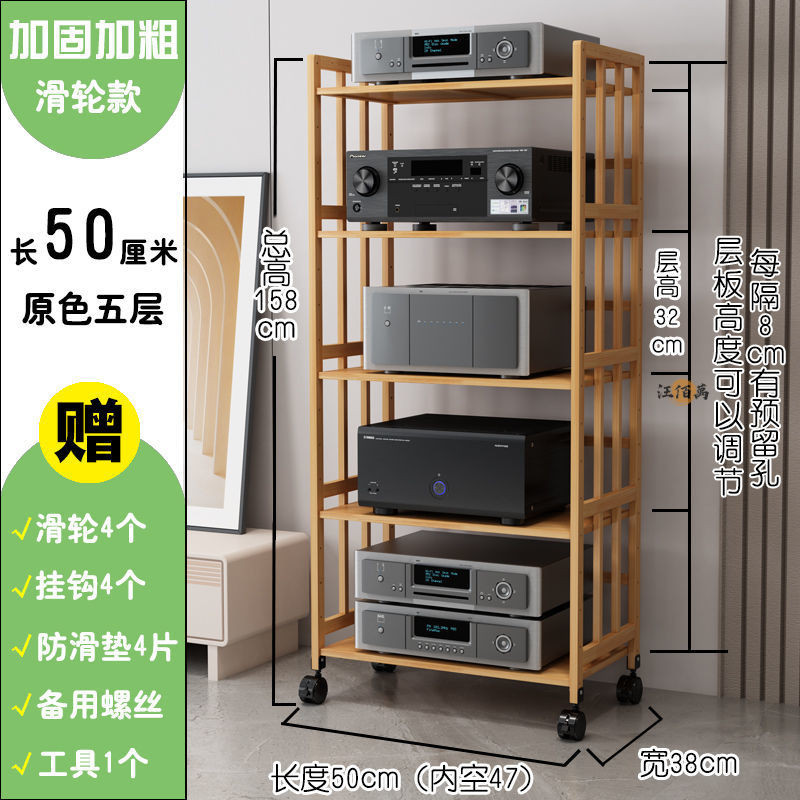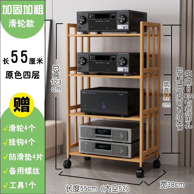 開立發票 【免運】音響架 四層架 cd架 可移動置物架 附輪層架 功放機架 楠竹置物架 落地層架 滾輪收納架 開放式層架yylp0618 6