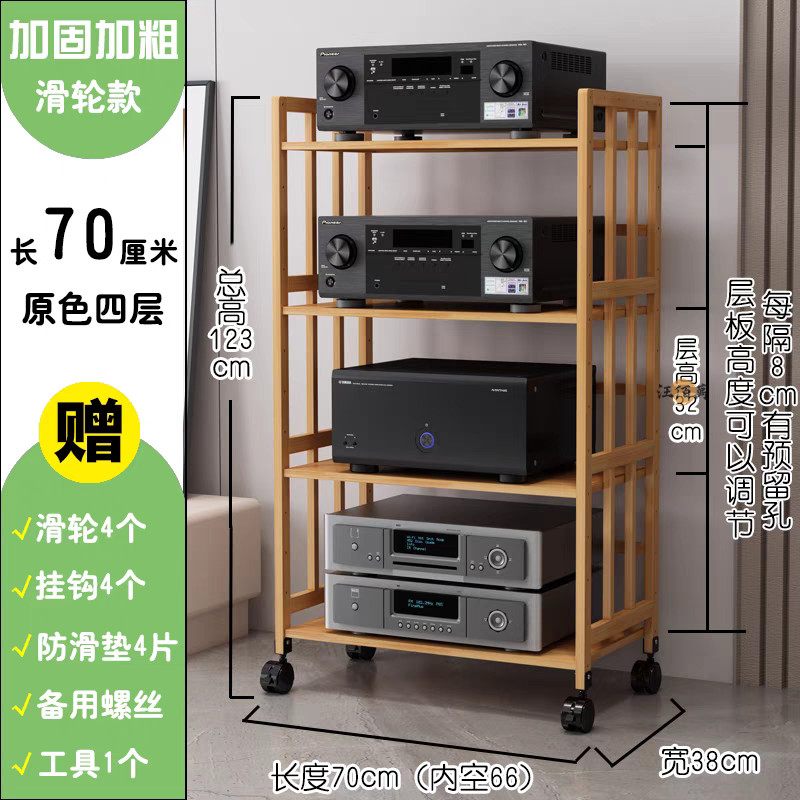 開立發票 【免運】音響架 四層架 cd架 可移動置物架 附輪層架 功放機架 楠竹置物架 落地層架 滾輪收納架 開放式層架yylp0618 7