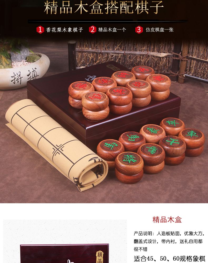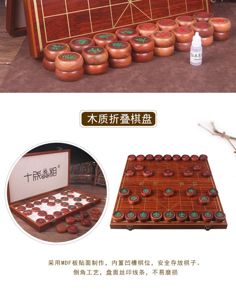 免運 工廠現貨出 特價 象棋 中国象棋 十成品相緬甸香花梨木象棋子竹木棋盒折疊棋盤套裝大號紅木棋包郵特惠/開立發票 特價出 H1114 3