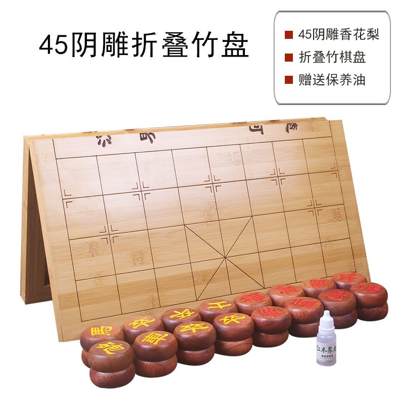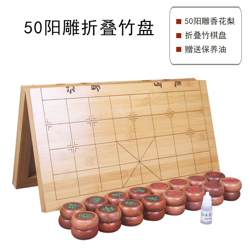 免運 工廠現貨出 特價 象棋 中国象棋 十成品相緬甸香花梨木象棋子竹木棋盒折疊棋盤套裝大號紅木棋包郵特惠/開立發票 特價出 H1114 1