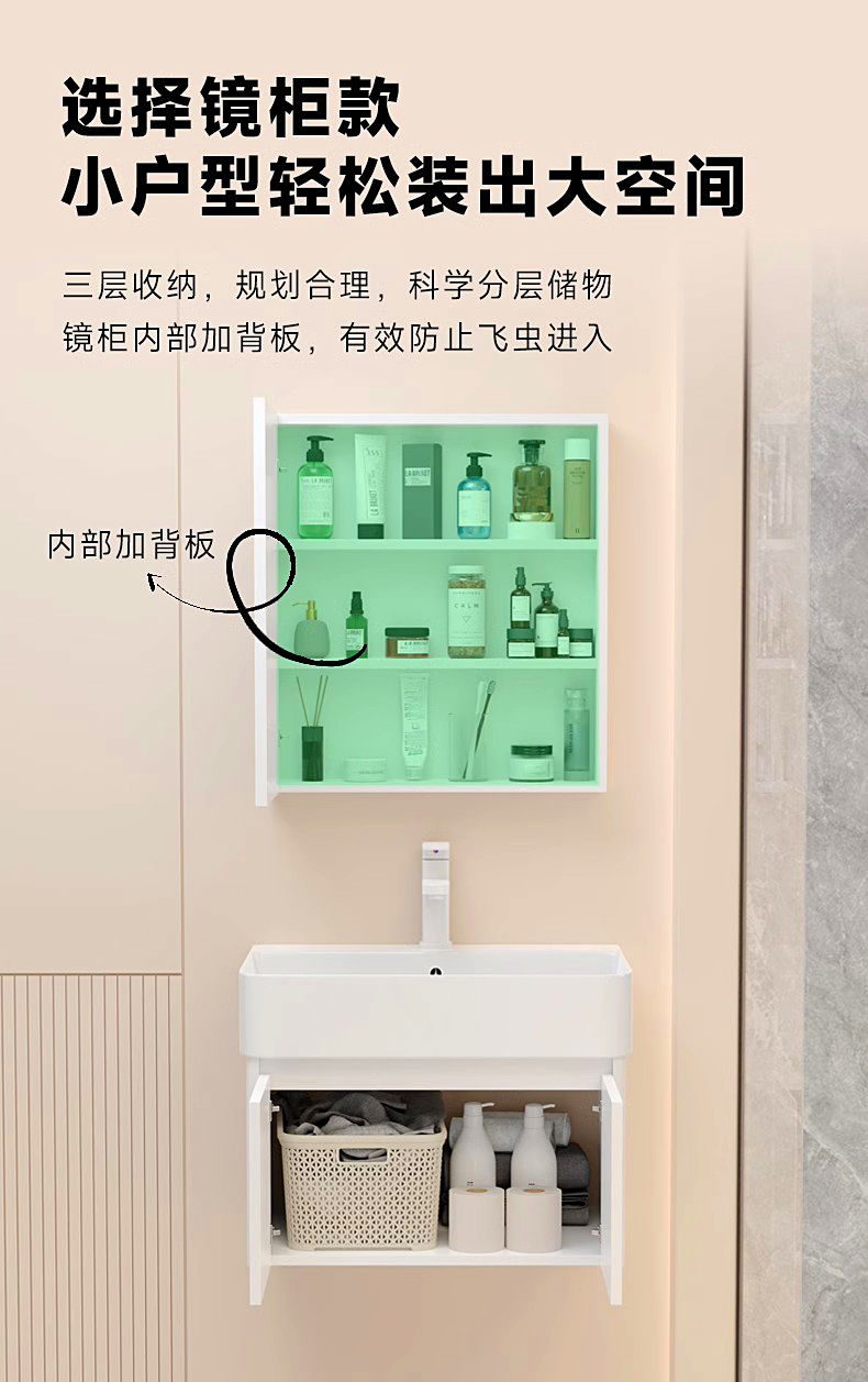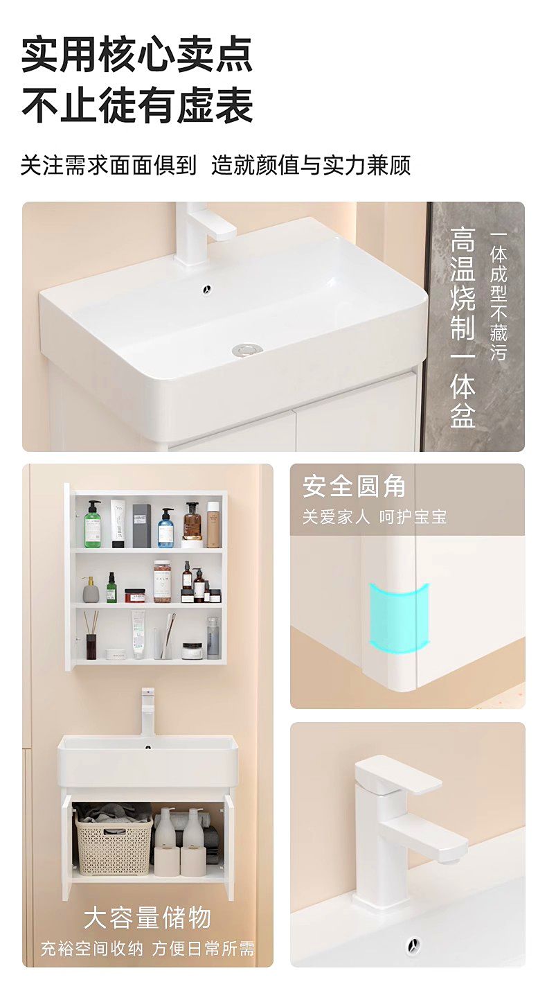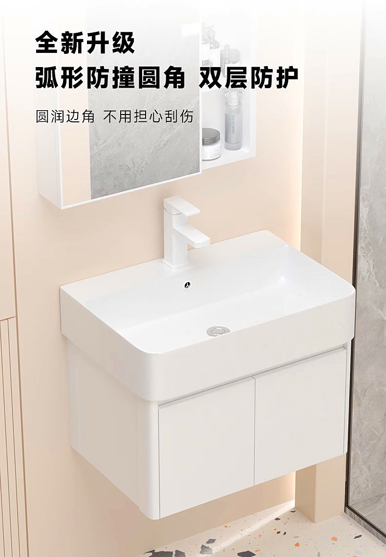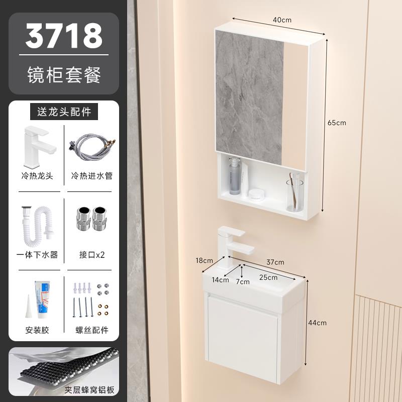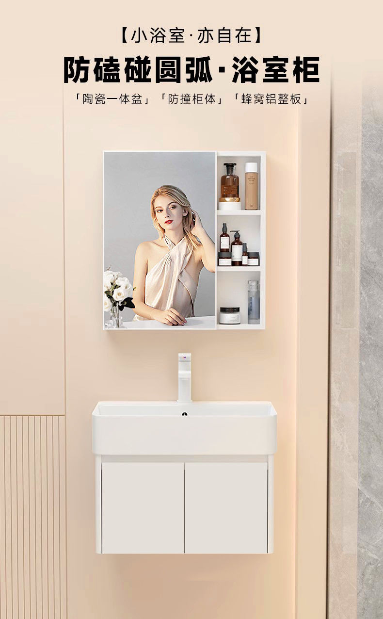 5. 免運 浴室櫃 洗手盆 極簡風小戶型窄小洗手盆蜂窩太空鋁洗臉盆浴室柜組合圓角陶瓷一體特惠/開立發票 全館8折H0915