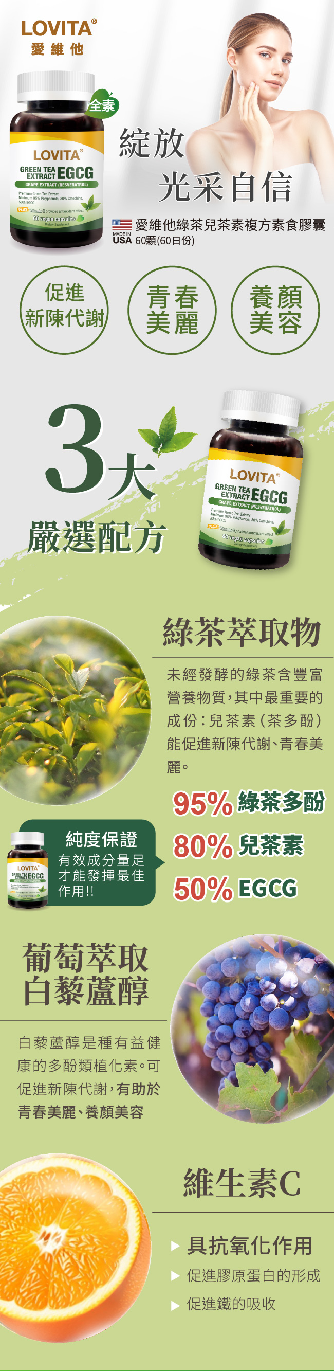 高效萃取綠茶EGCG+抗氧化維生素C