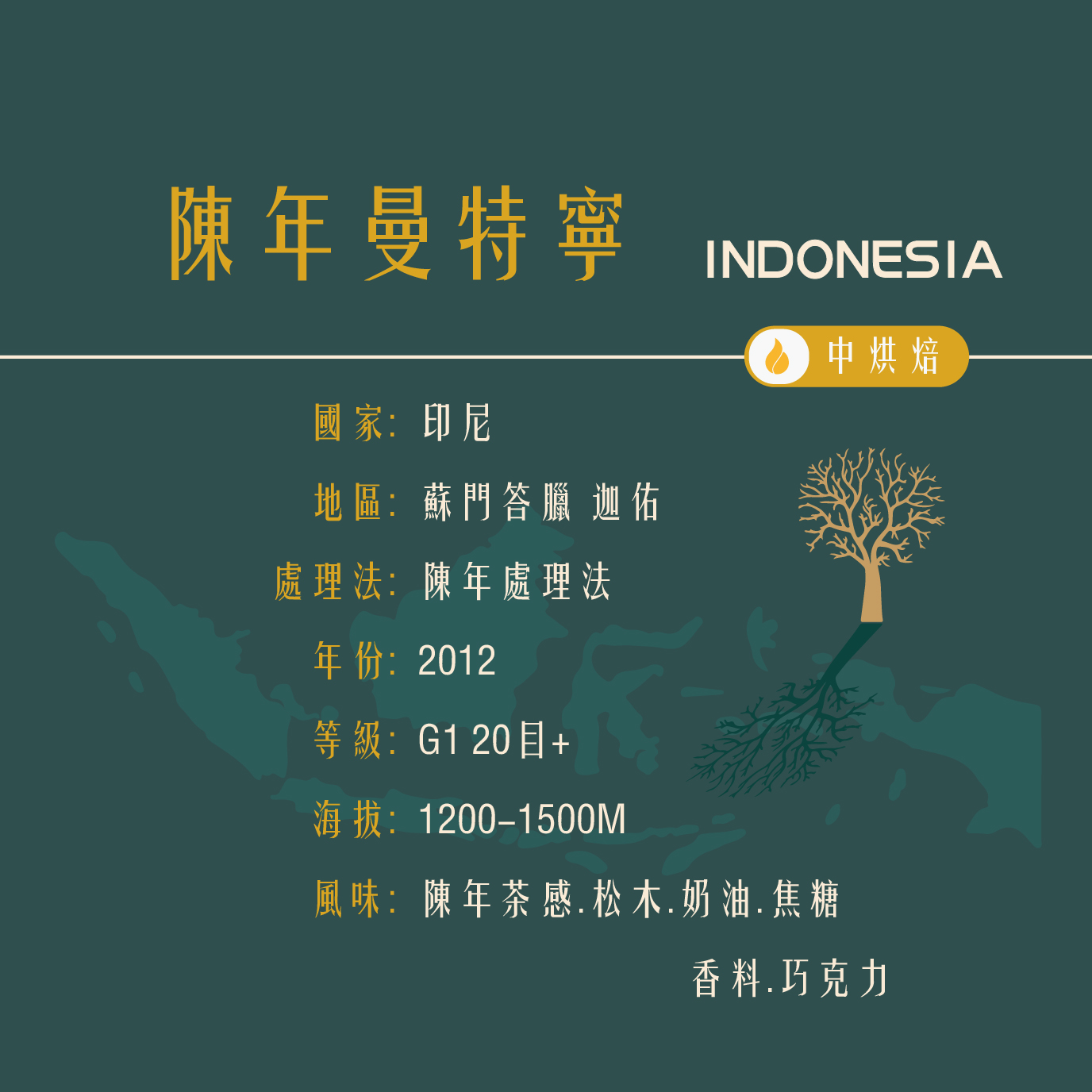 蘇門答臘【陳年曼特寧】陳年處理法 20目+ 中焙 精品咖啡豆 (1磅) 曼珈咖啡