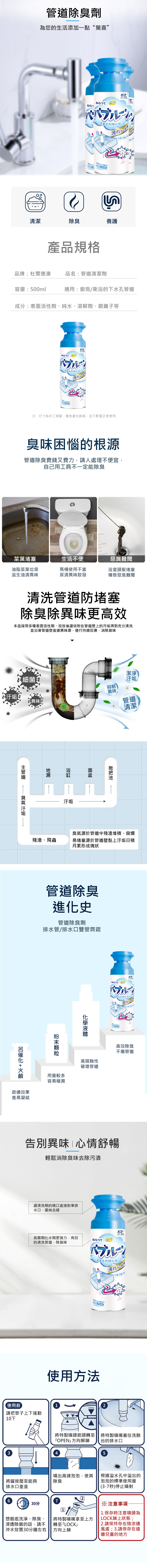 新概念洗臉盆排水管清潔劑 抑制異味/有效除臭