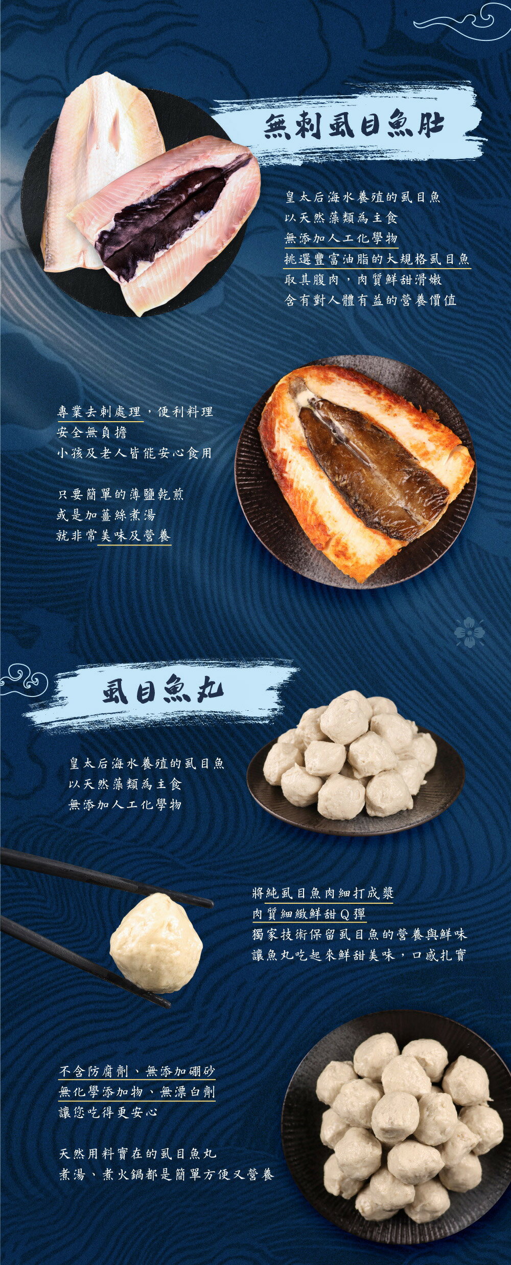 皇太后海水養殖的虱目魚 挑選豐冨油脂的大規格虱目魚 肉質鮮甜滑嫩含有對人體有益的營養價值 專業去刺處理,便利料理,安全無負擔 成分:虱目魚 規格:280g / 350g 保存期限:冷凍一年 產地:台灣雲林