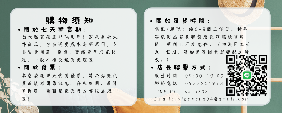 | 服務時間 : 週一至週五 09:00~12:00 13:00~17:00 *休假日及國定假日不上班* | 客服電話 :0933201973 | 客服信箱 :rongchen097@gmail.com |店長line:saco203
