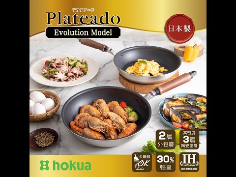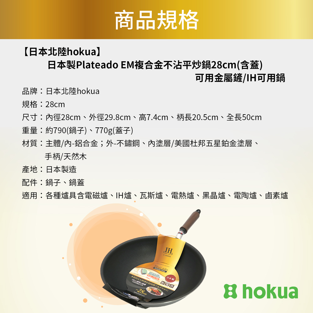【日本北陸hokua】日本製Plateado EM複合金不沾平炒鍋28cm(含蓋)可用金屬鏟/IH可用鍋