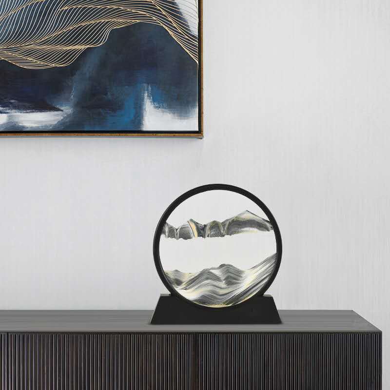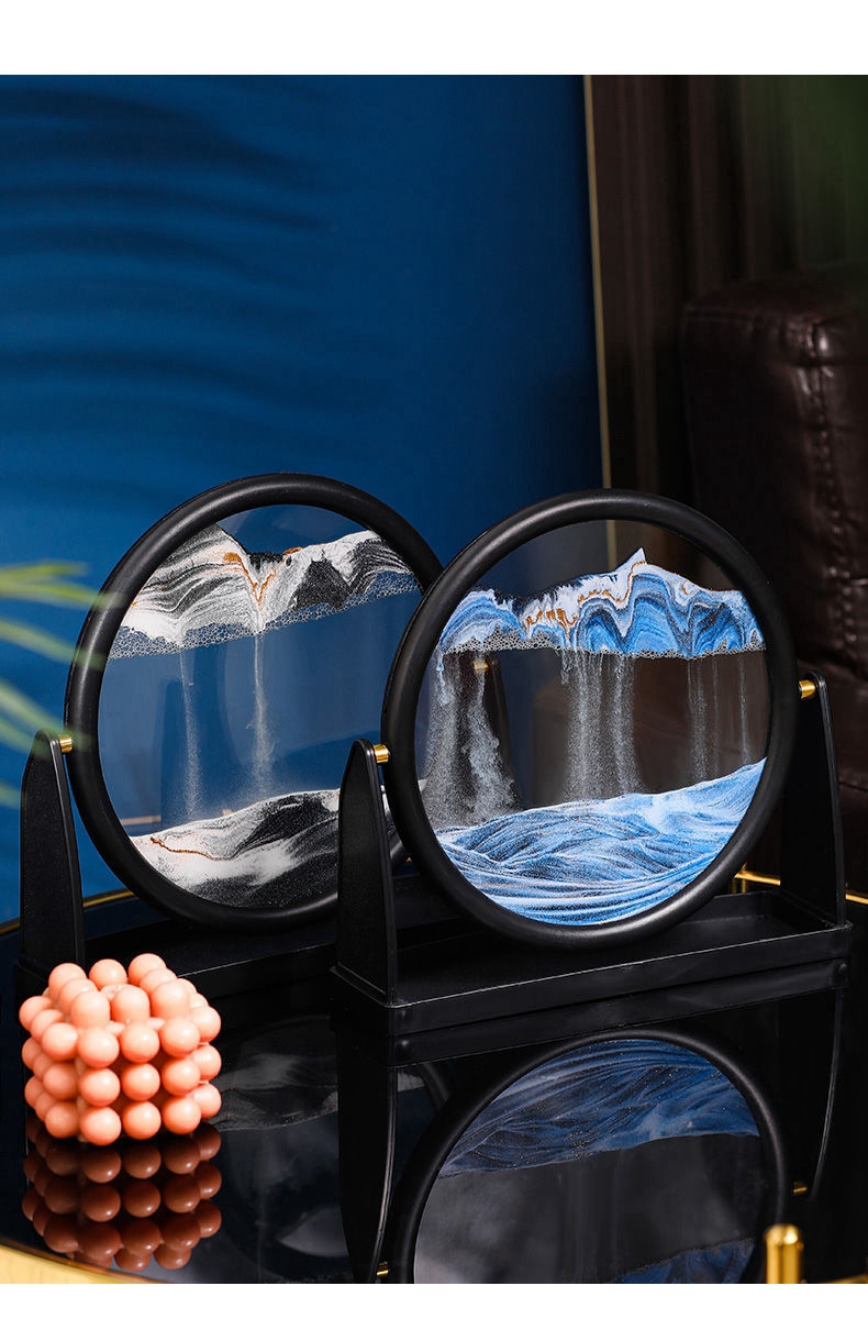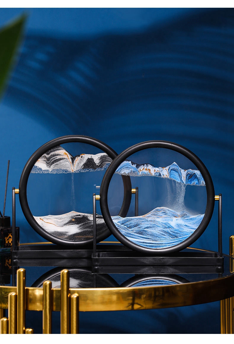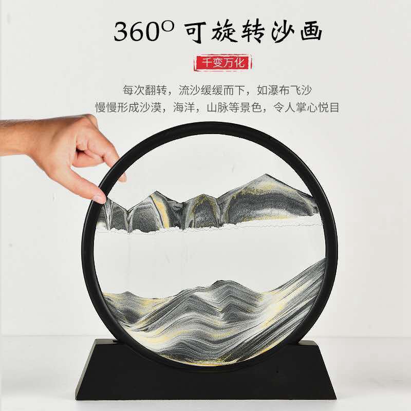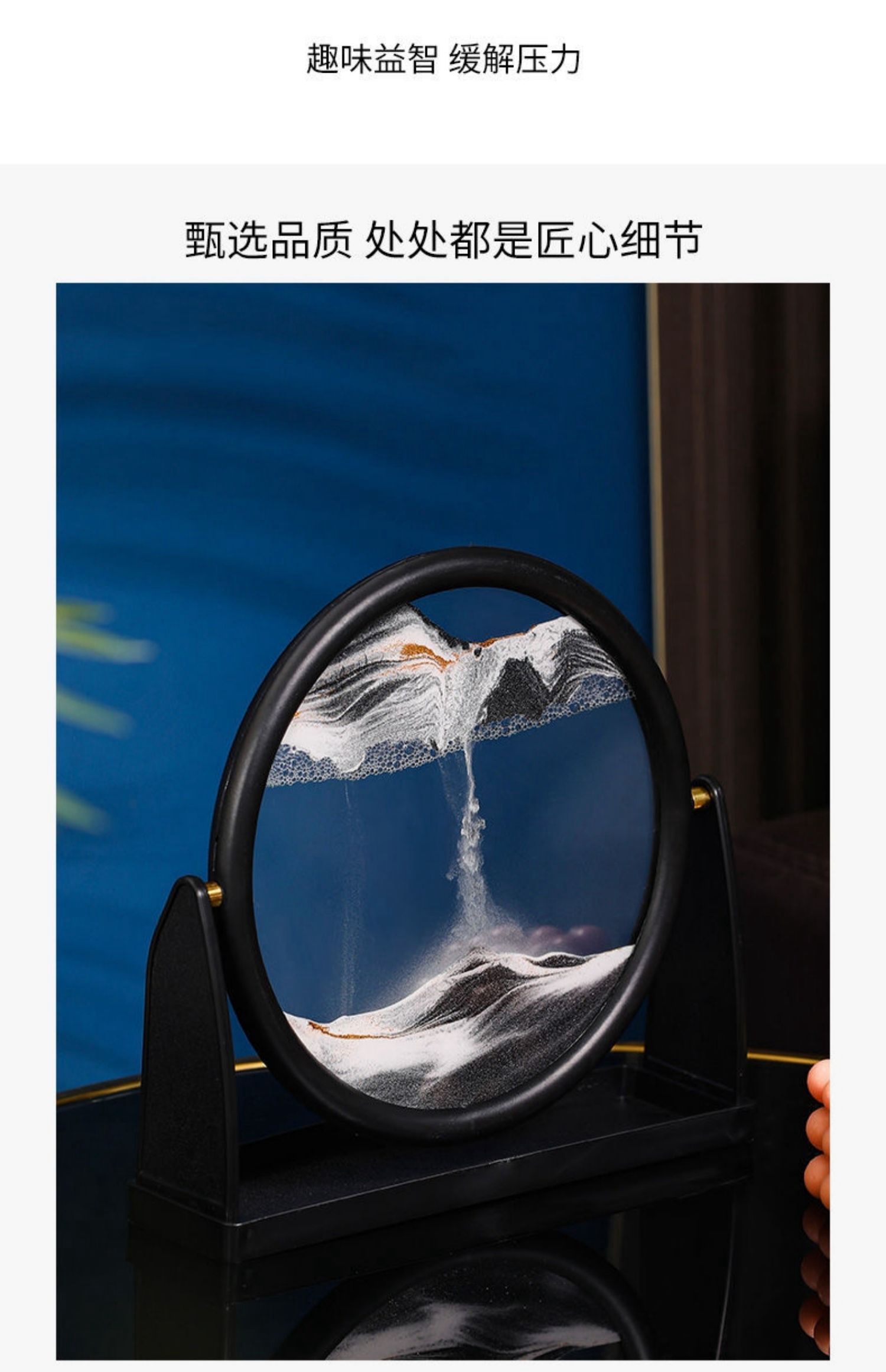 5. 創意解壓翻轉圓盤3d山水立體動態玻璃流沙畫沙漏擺件酒柜客廳裝飾 雙11全館免運