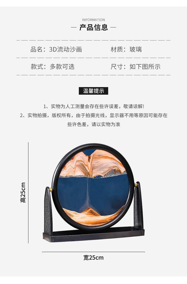 創意解壓翻轉圓盤3d山水立體動態玻璃流沙畫沙漏擺件酒柜客廳裝飾 雙11全館免運 5