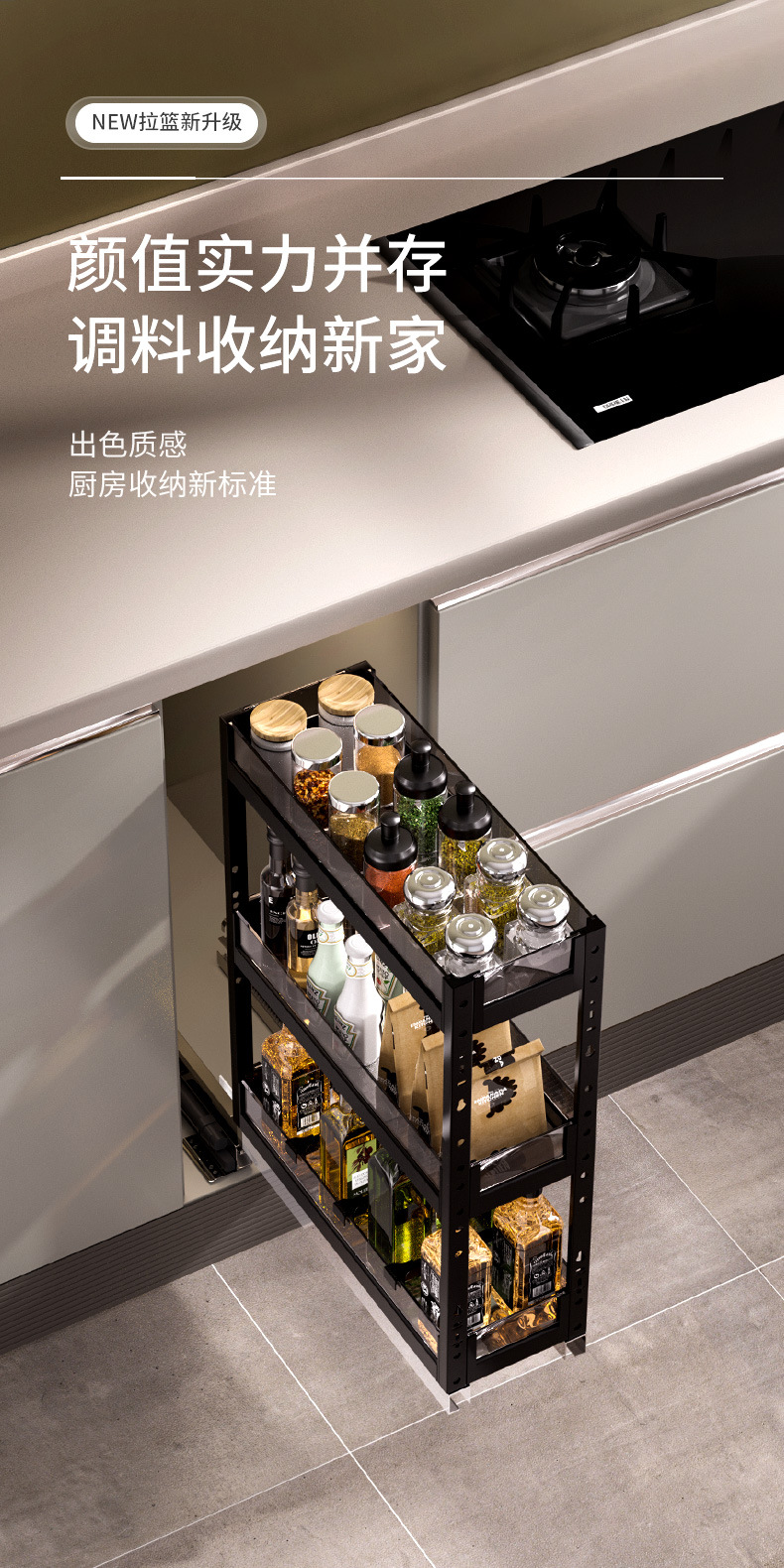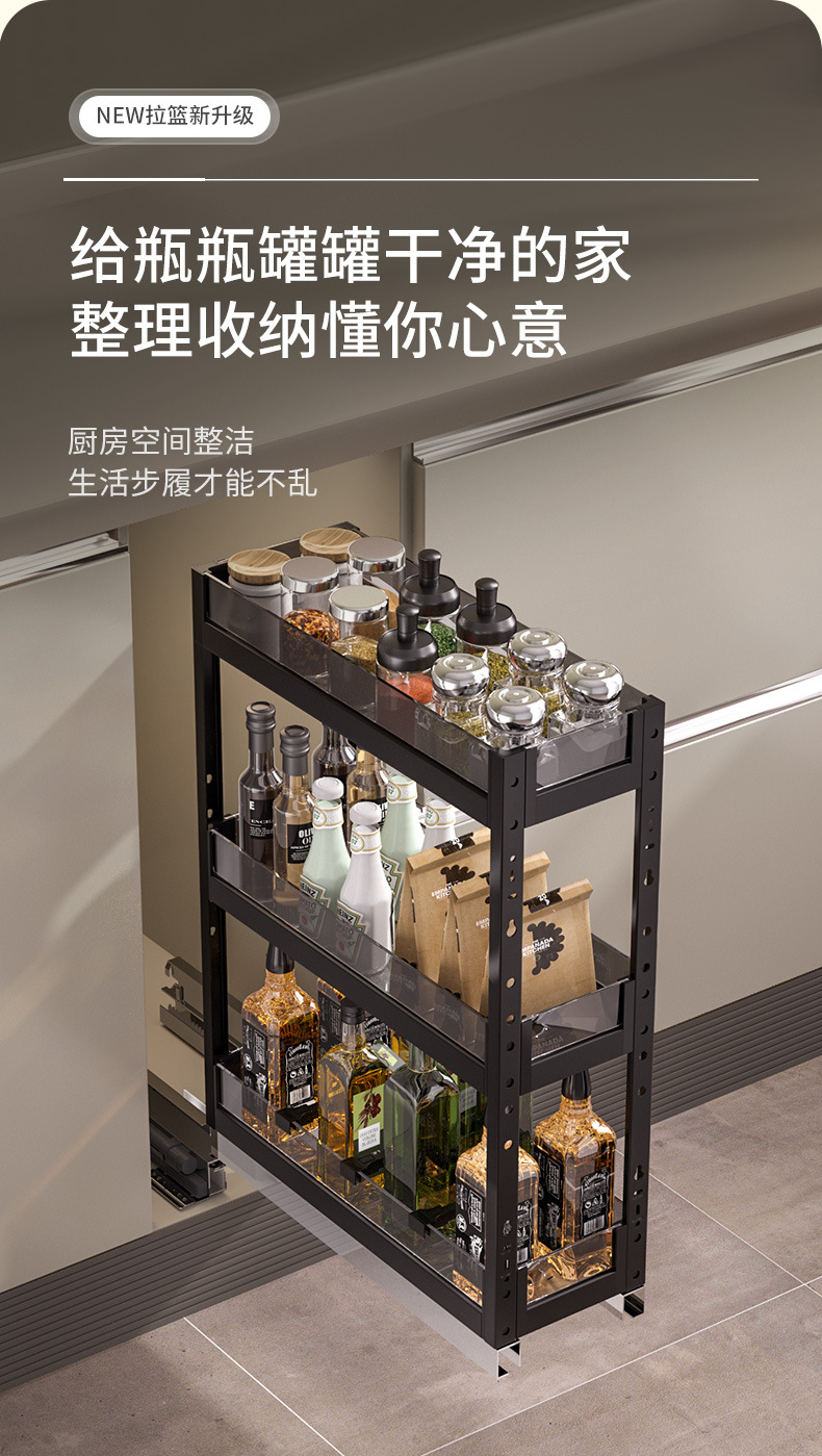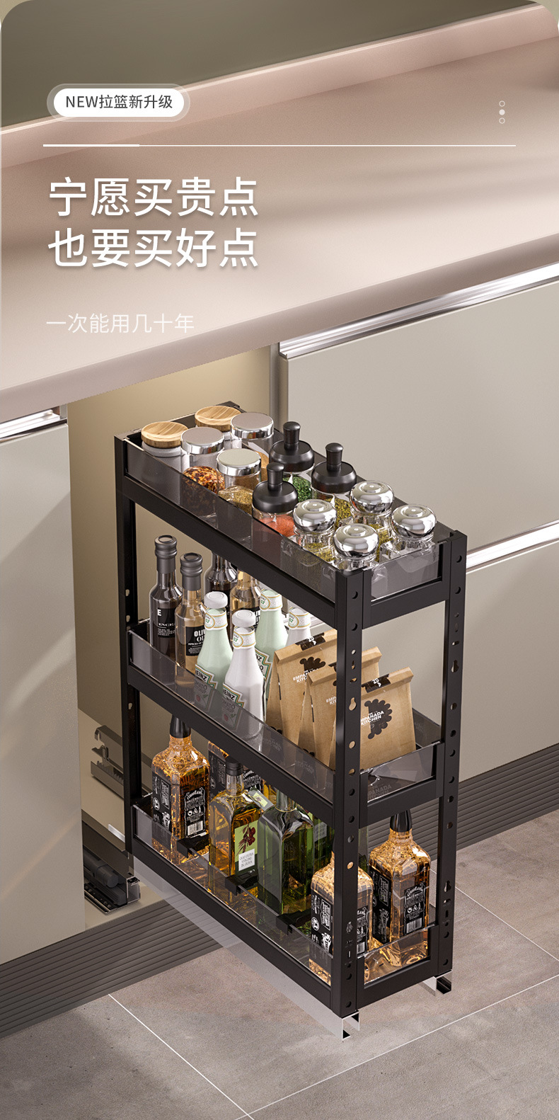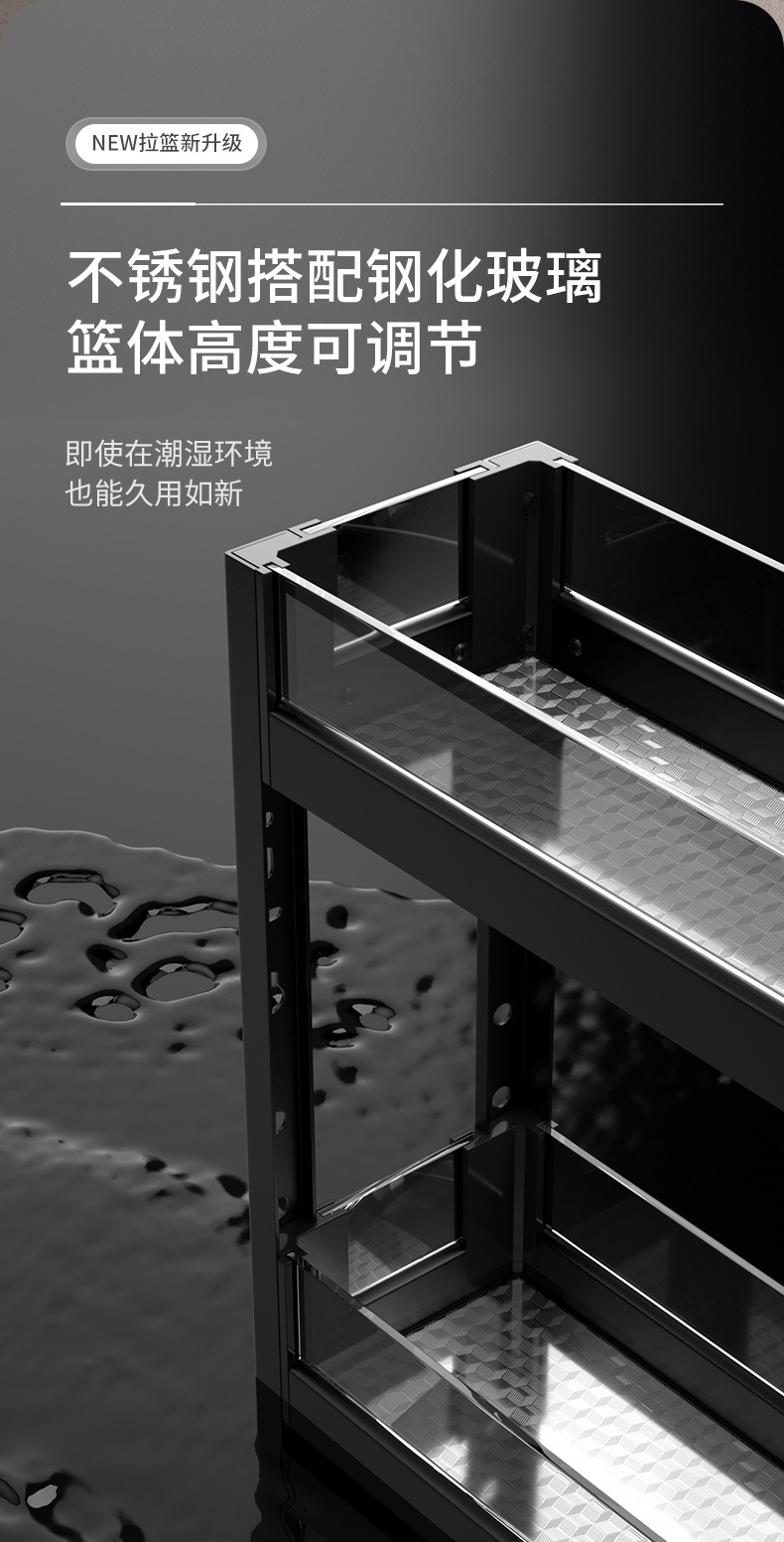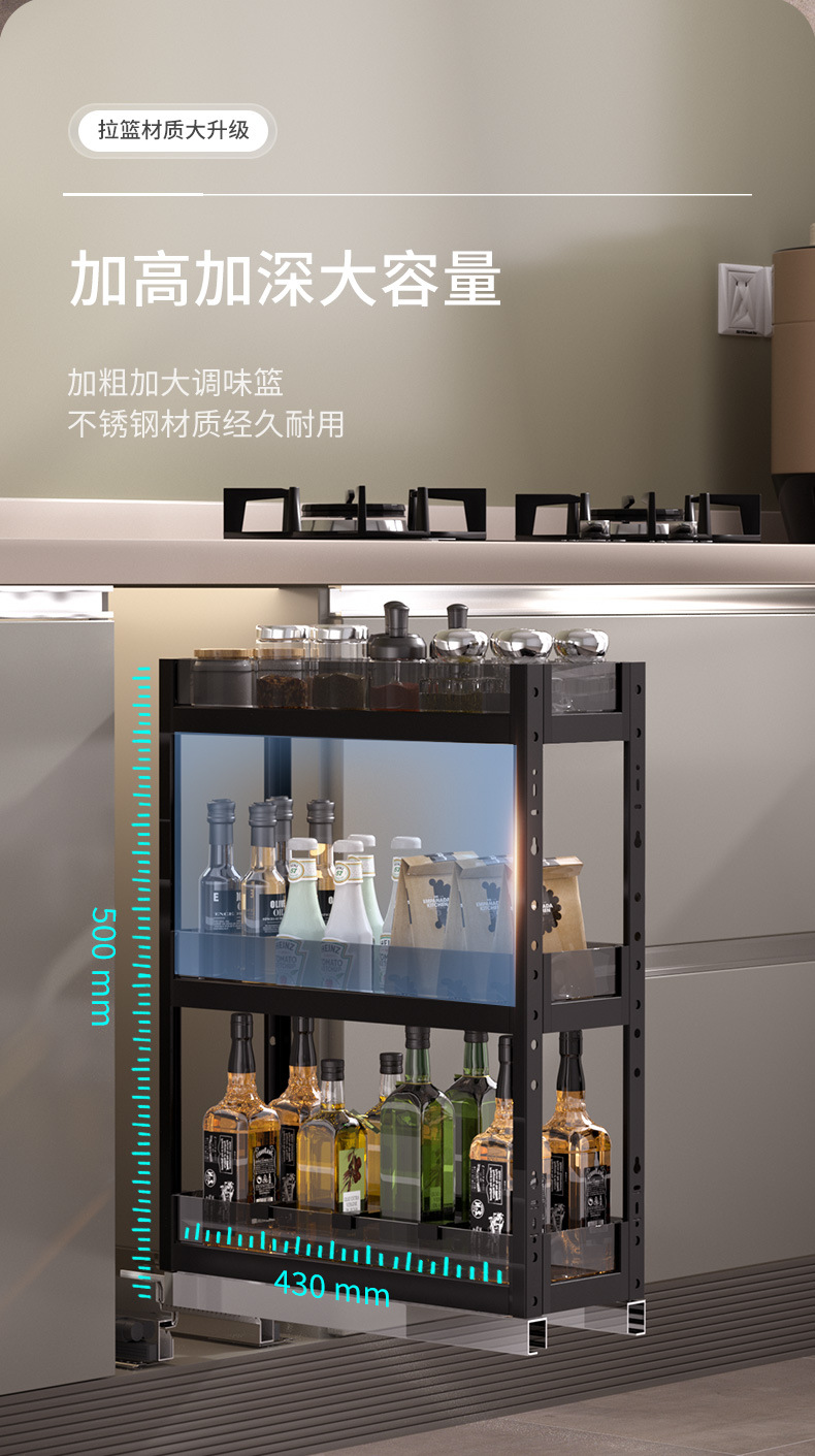 調味拉籃極窄廚房櫥櫃不銹鋼雙層抽屜式抽拉櫃內置物架小尺寸 雙11全館免運 3