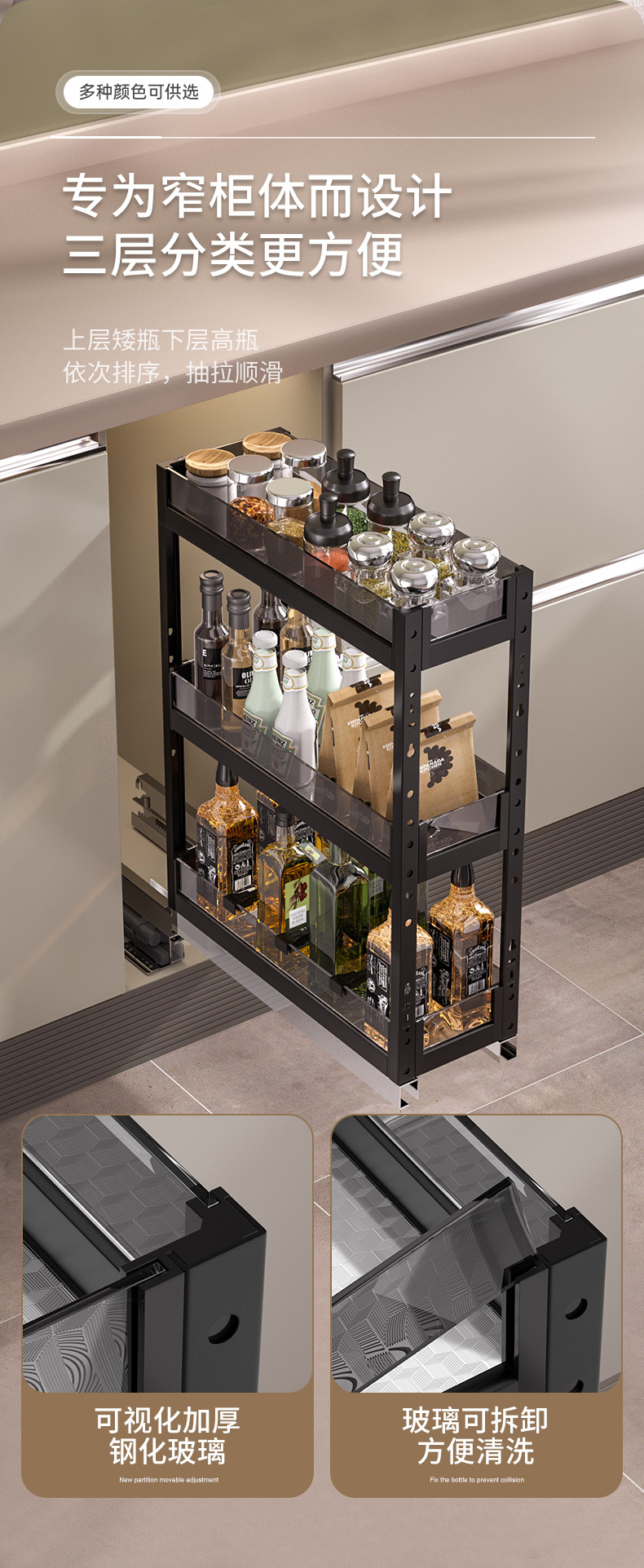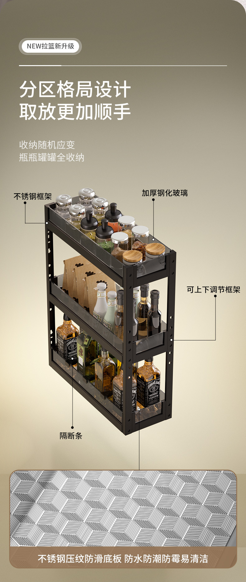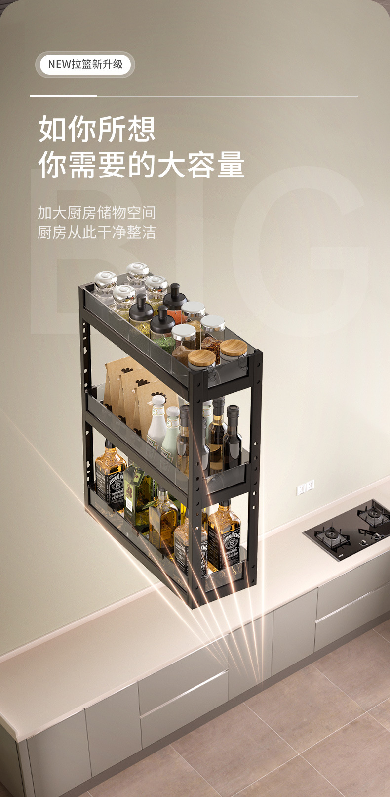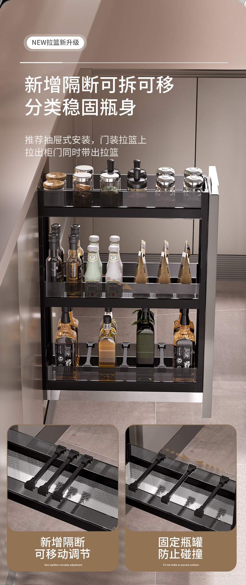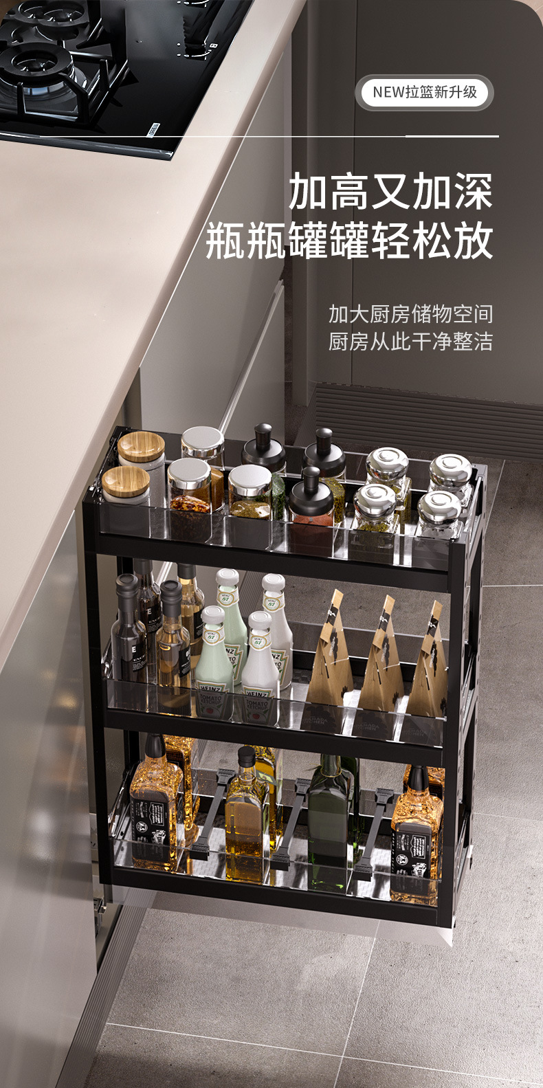 調味拉籃極窄廚房櫥櫃不銹鋼雙層抽屜式抽拉櫃內置物架小尺寸 雙11全館免運 3