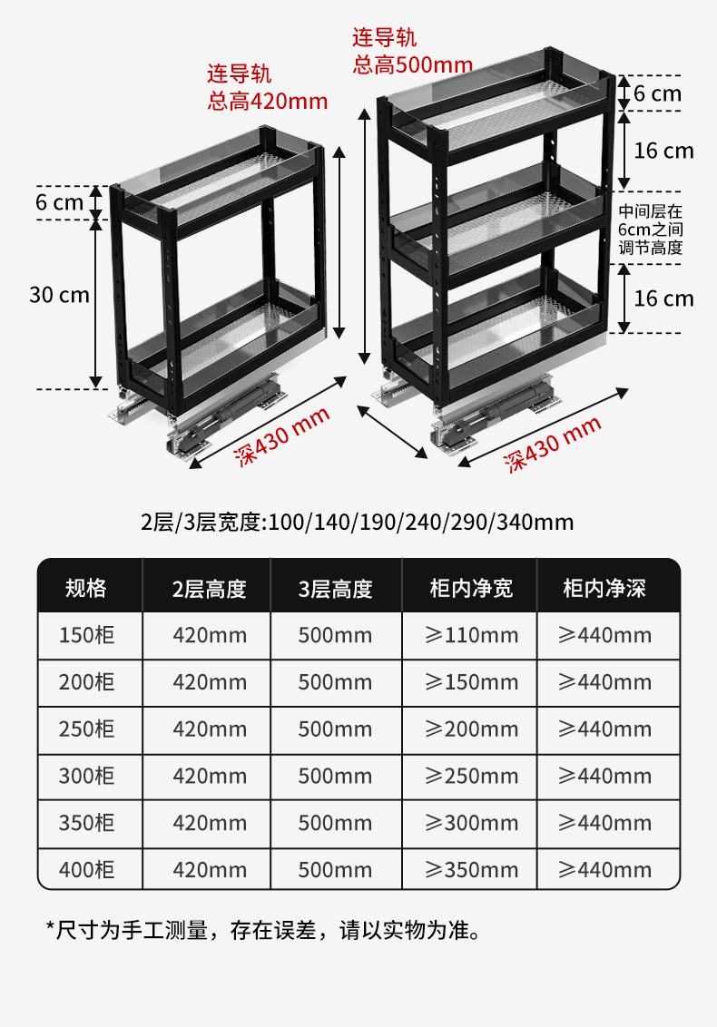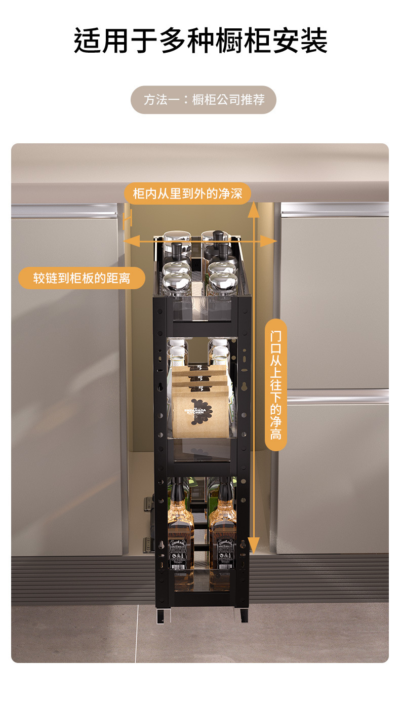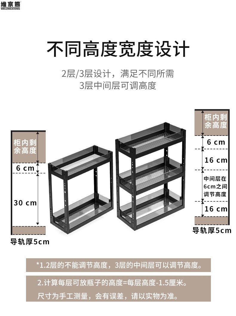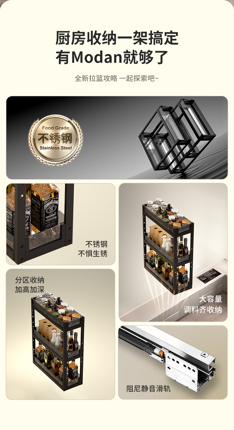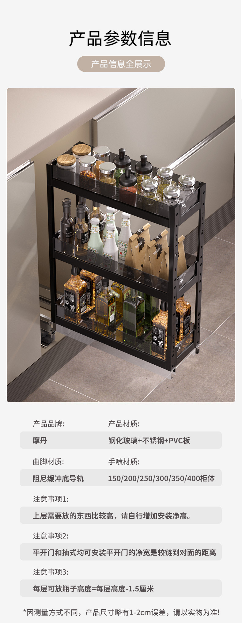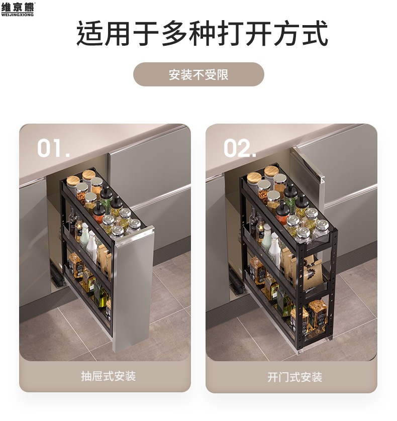 調味拉籃極窄廚房櫥櫃不銹鋼雙層抽屜式抽拉櫃內置物架小尺寸 雙11全館免運 3