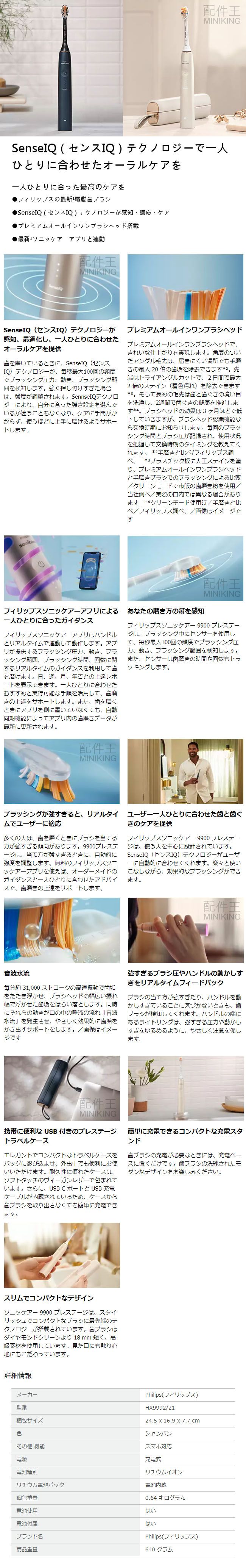 日本代購 Philips 飛利浦 Sonicare 9900 Prestige 頂級電動牙刷 HX9992 個人潔牙分析 Type C充電