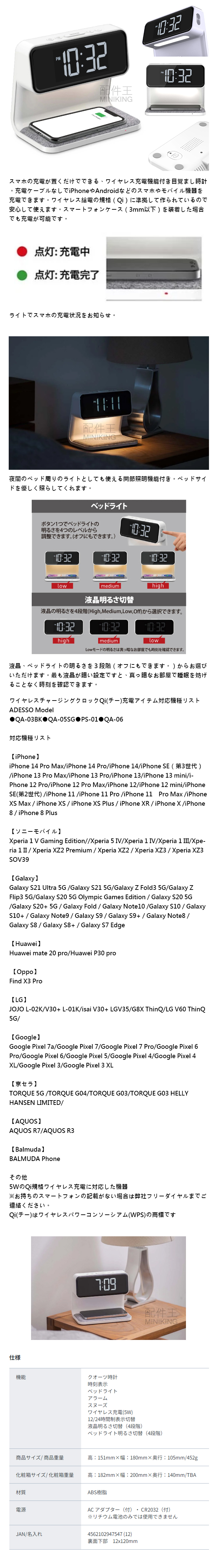 日本代購 ADESSO QA-04 多功能 電子鐘 鬧鐘 時鐘 小夜燈 床頭燈 充電盤 充電板